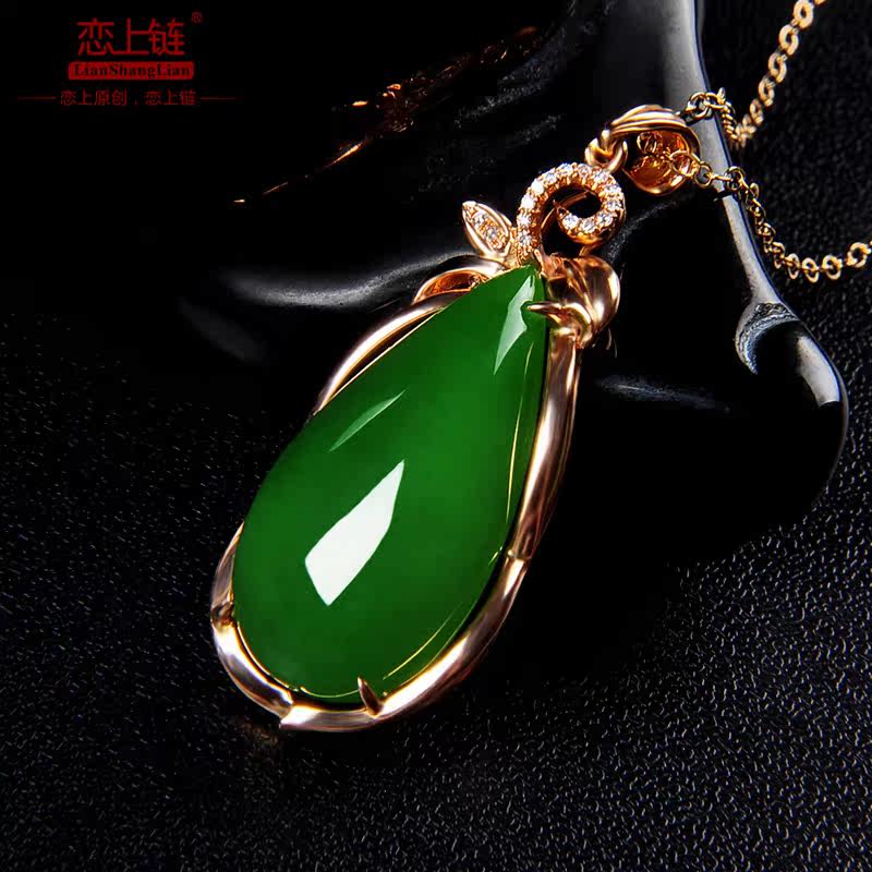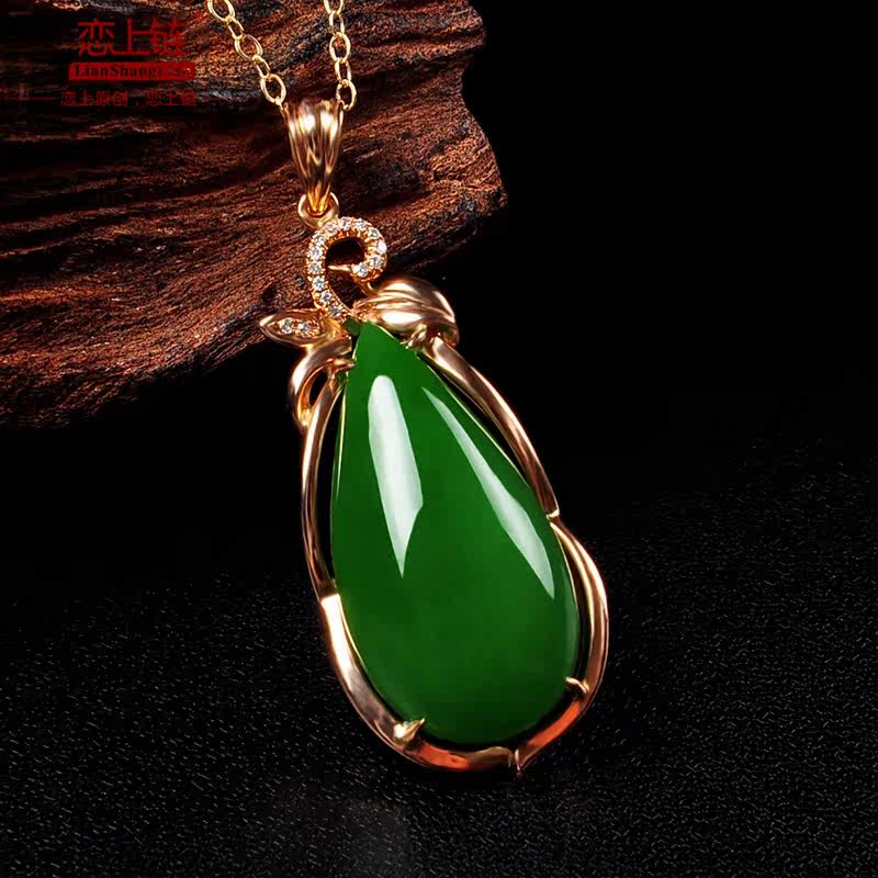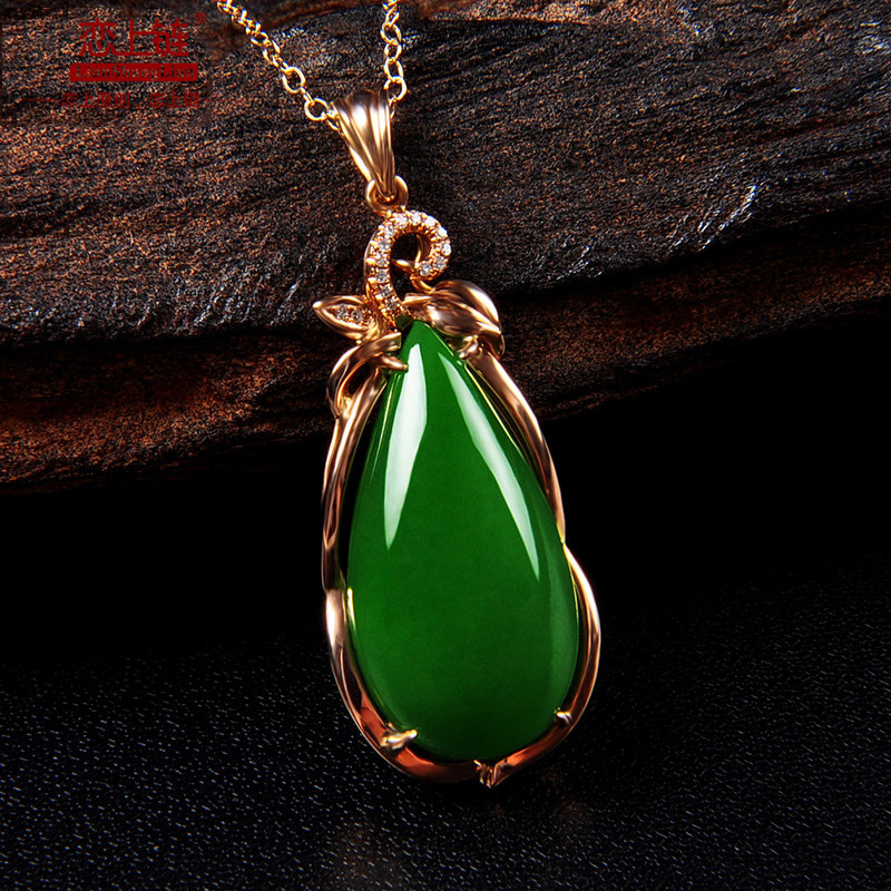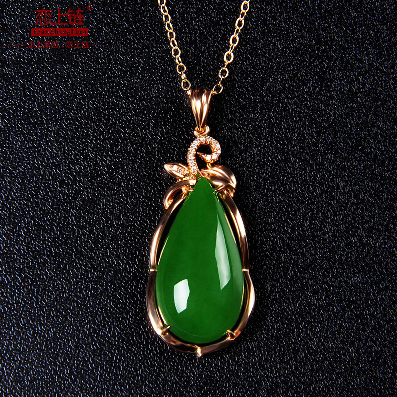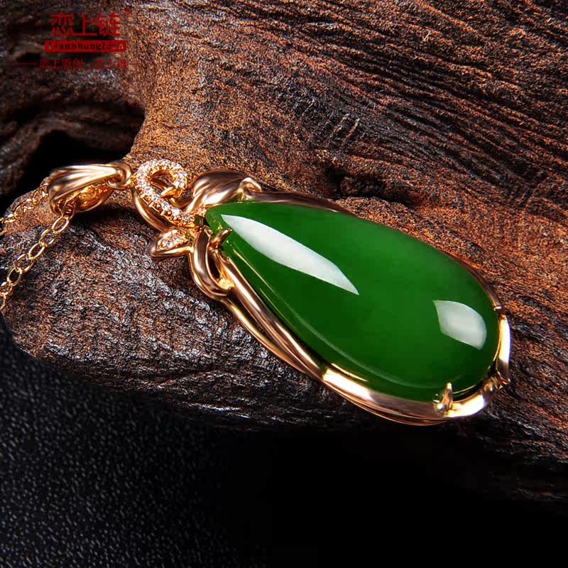 恋上链 Натуральная инкрустация камня из нефрита, яшма в форме капли, модное ожерелье, подвеска, золото 750 пробы