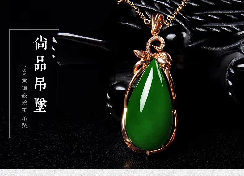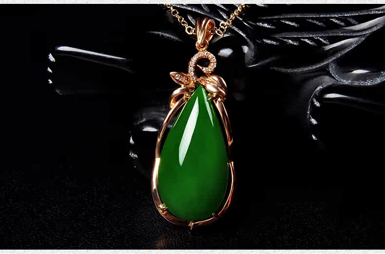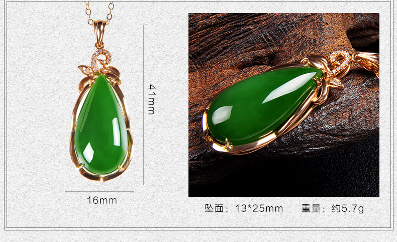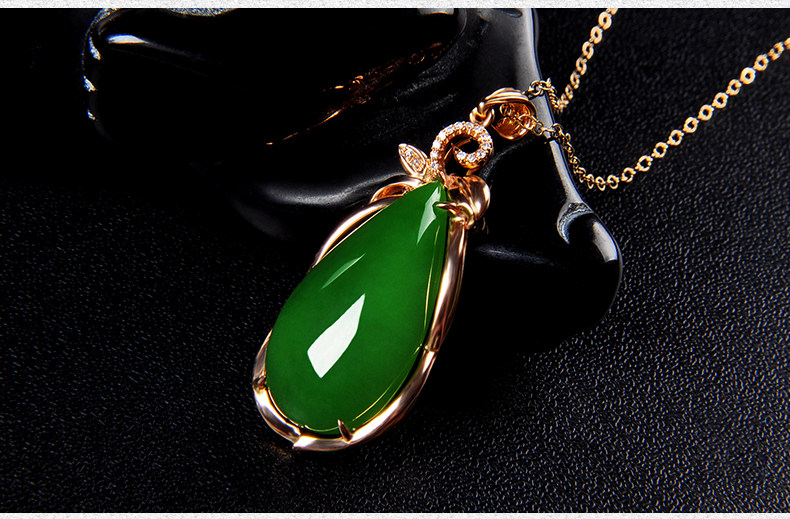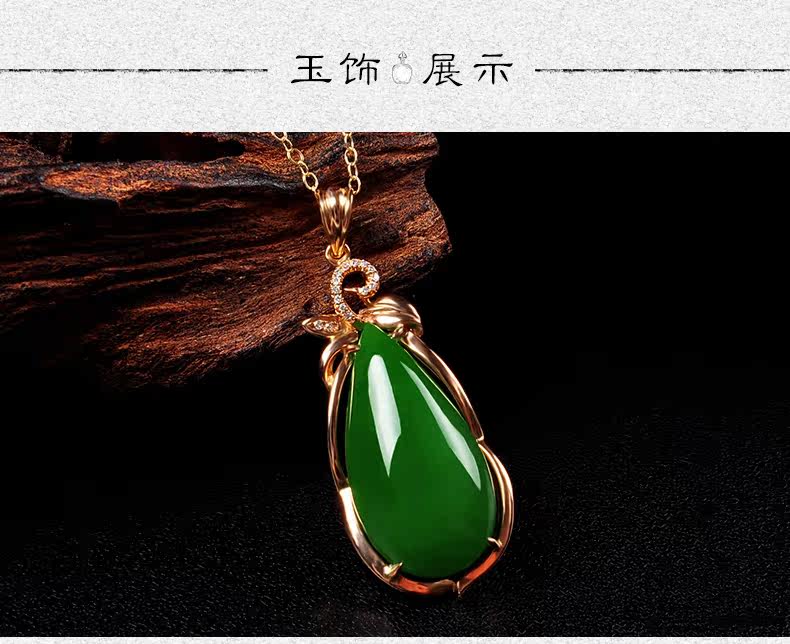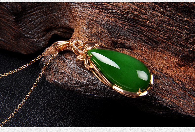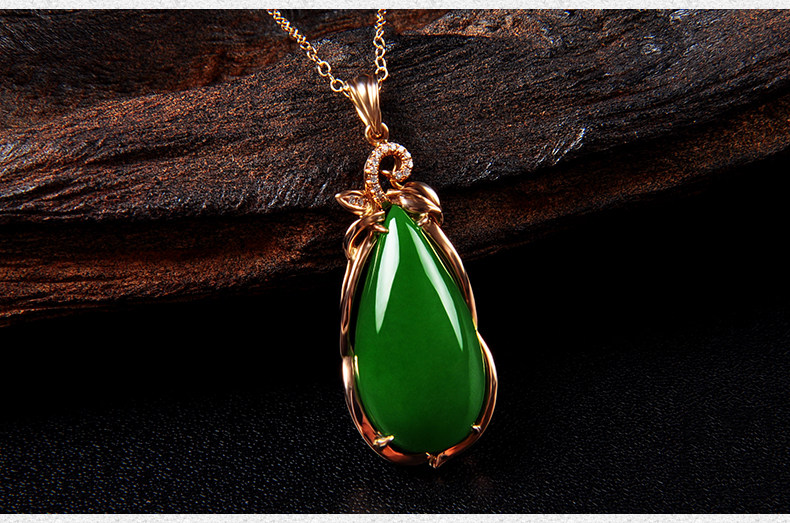 恋上链 Натуральная инкрустация камня из нефрита, яшма в форме капли, модное ожерелье, подвеска, золото 750 пробы