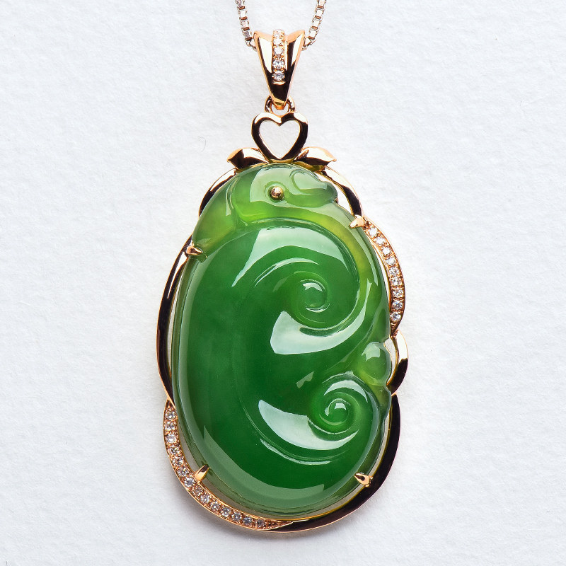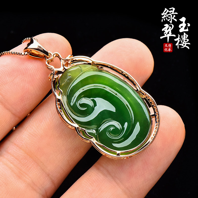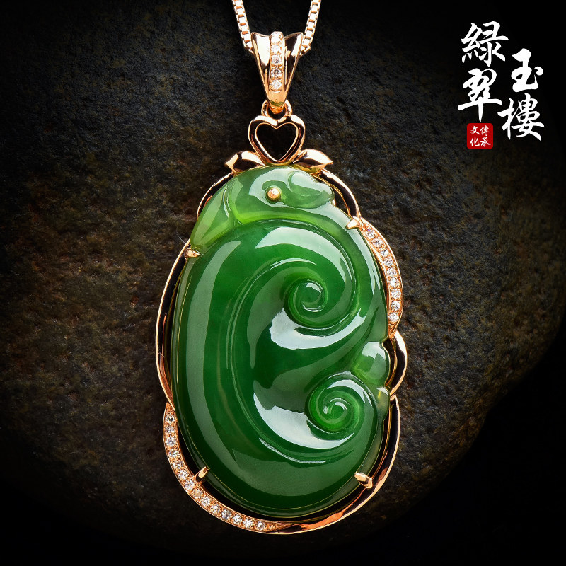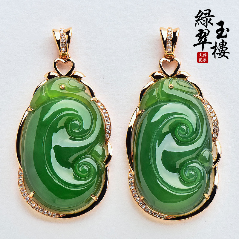 绿翠玉楼 Яшма, золотая подвеска из нефрита, 18 карат, розовое золото