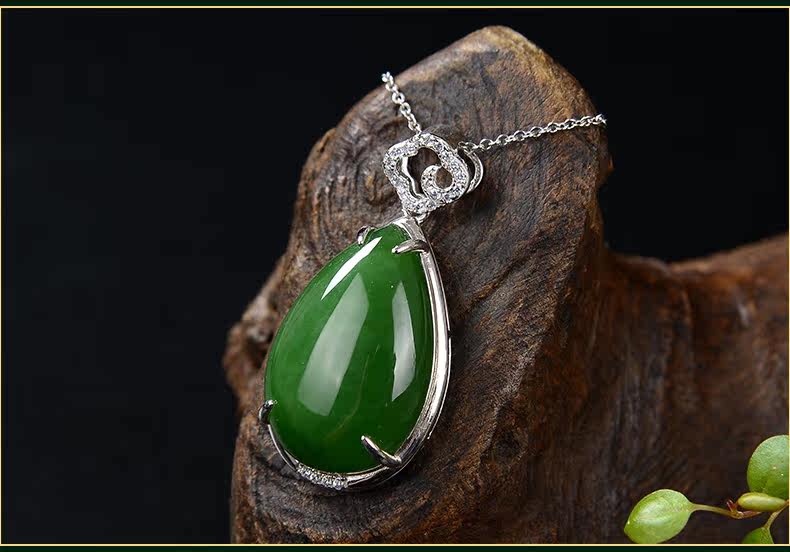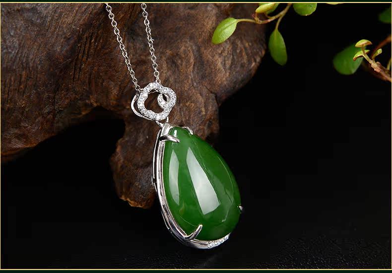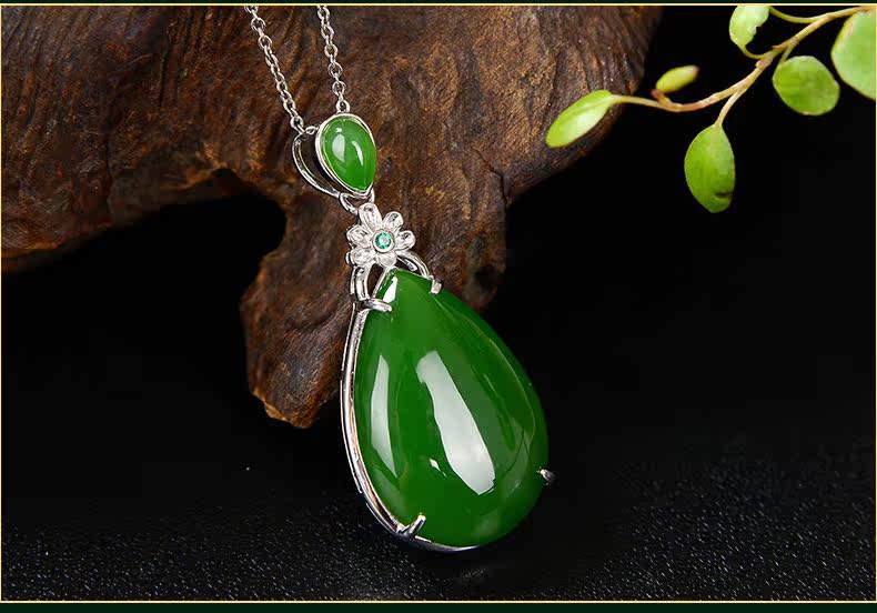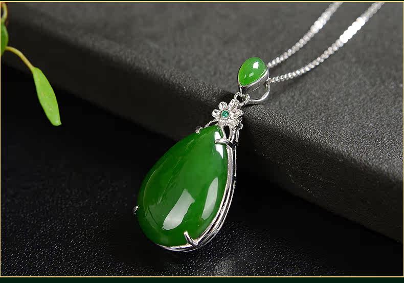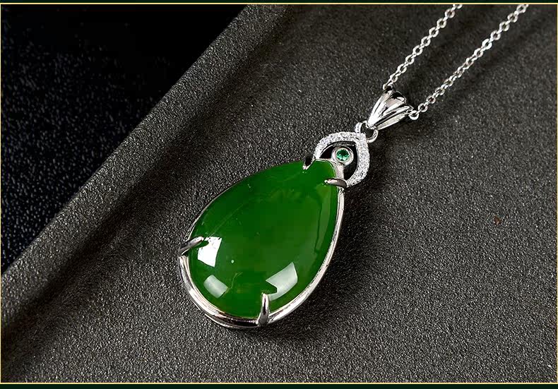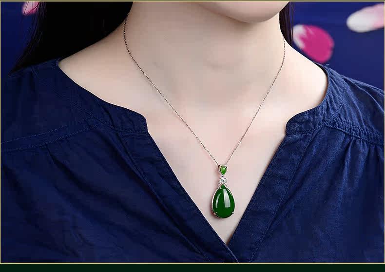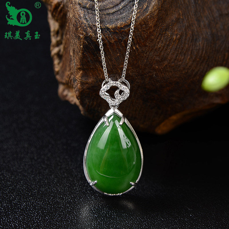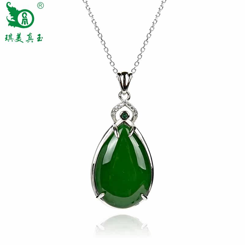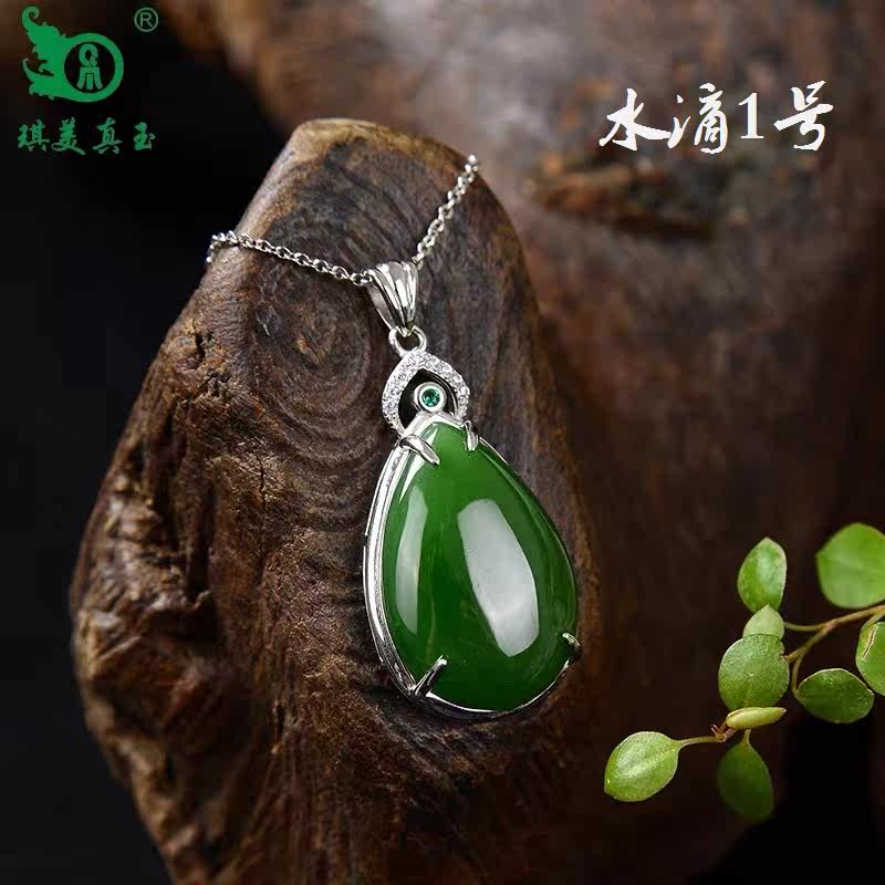 琪美真玉 Натуральная подвеска из нефрита, яшма в форме капли, ожерелье, серебро 925 пробы, женский стиль