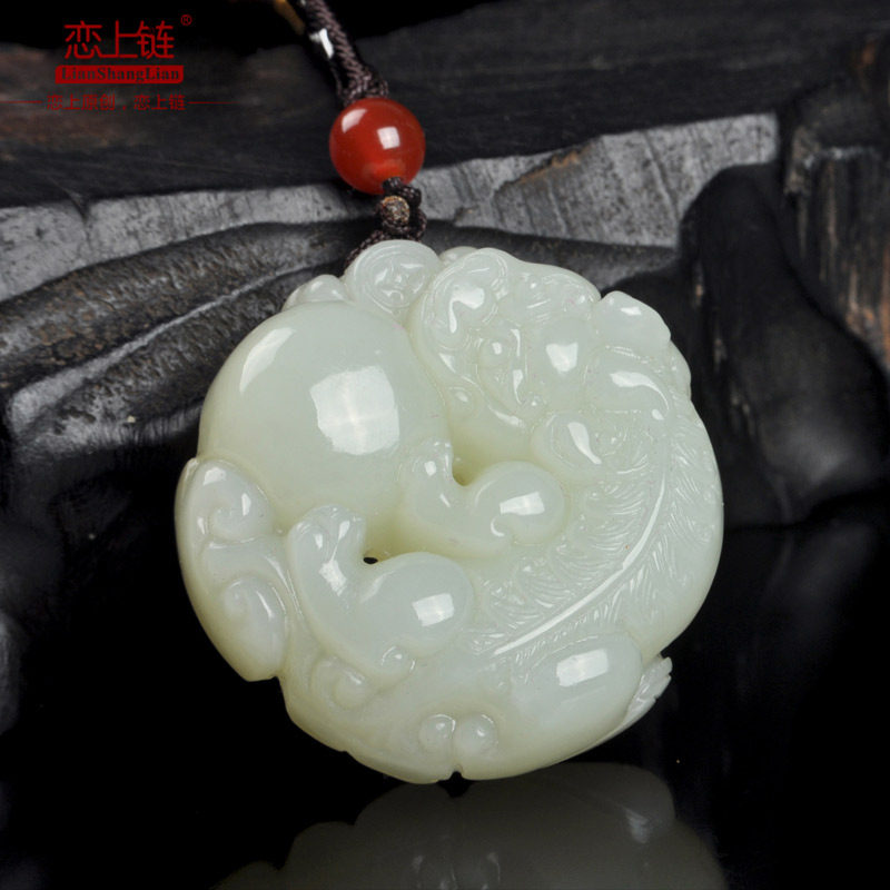 恋上链 Натуральная подвеска из округа Хотан из белого нефрита для влюбленных из старинного материала