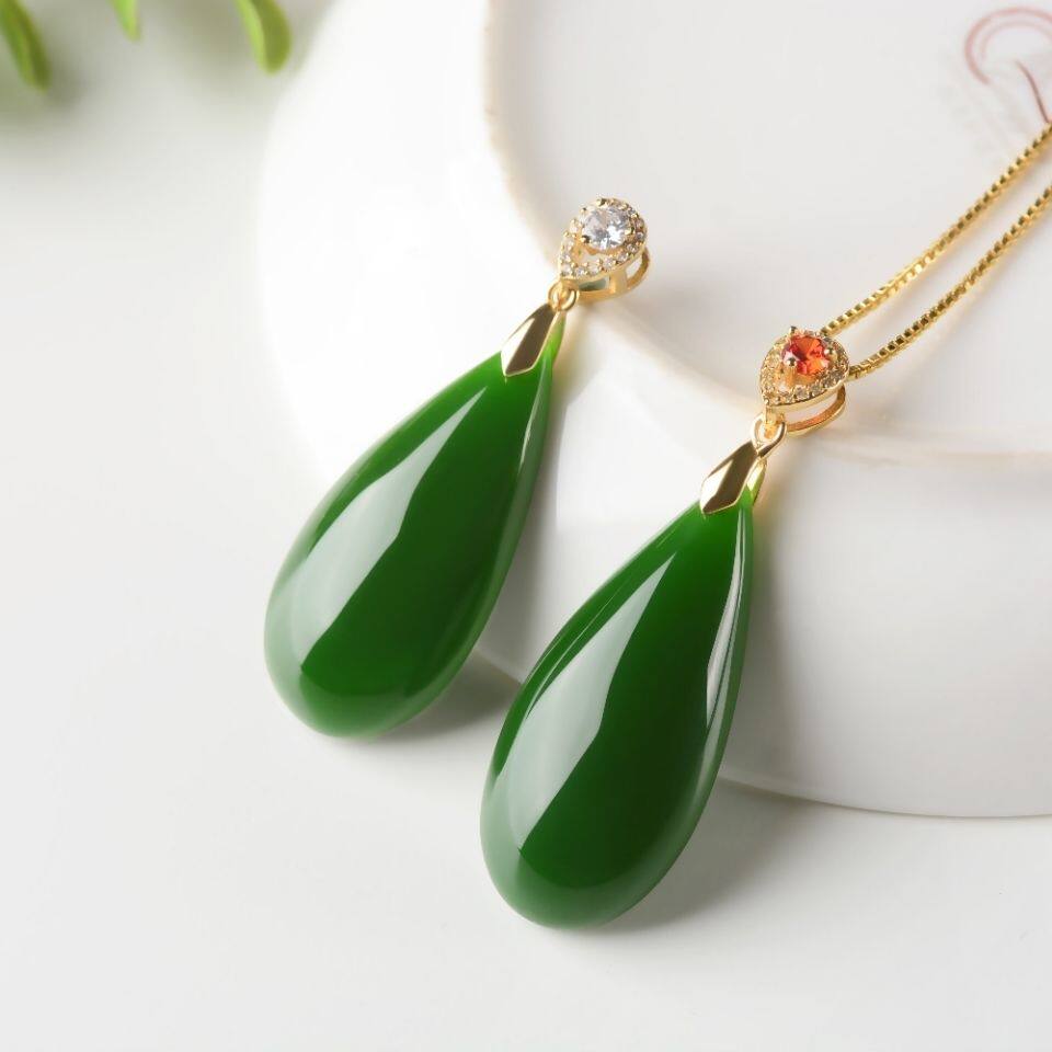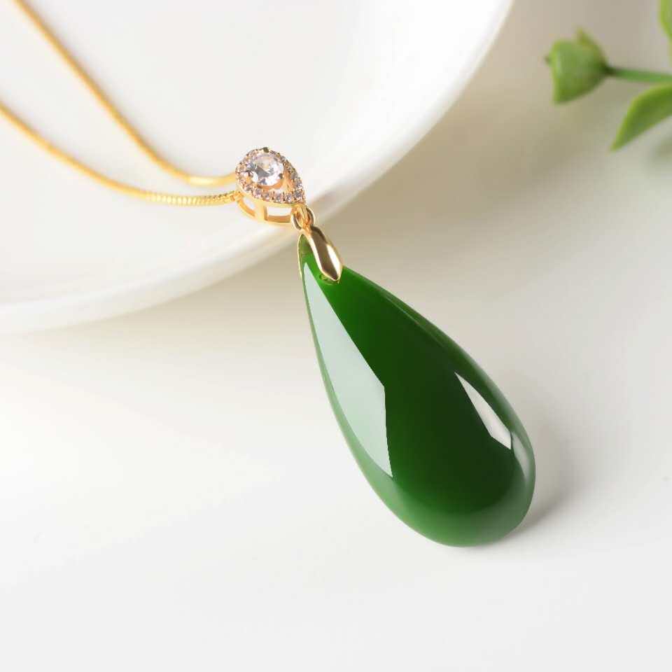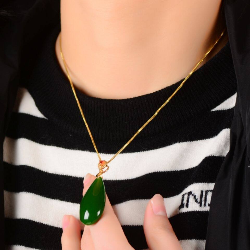 Натуральная яшма из нефрита, ожерелье в форме капли, подвеска, женский стиль, золото 750 пробы