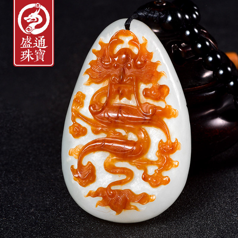盛通珠宝 Натуральный полированный камень из нефрита, украшение в форме дракона из белого нефрита, подвеска подходит для мужчин и женщин