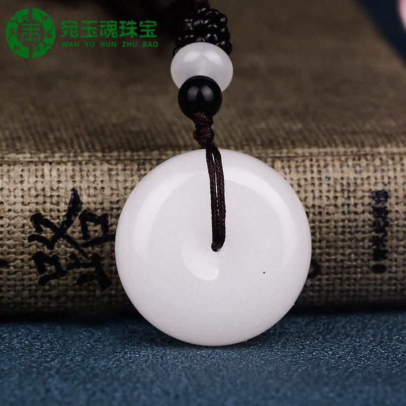 宛玉魂 Защитный амулет из белого нефрита, пряжка, подвеска подходит для мужчин и женщин, белое ожерелье, подарок на день рождения