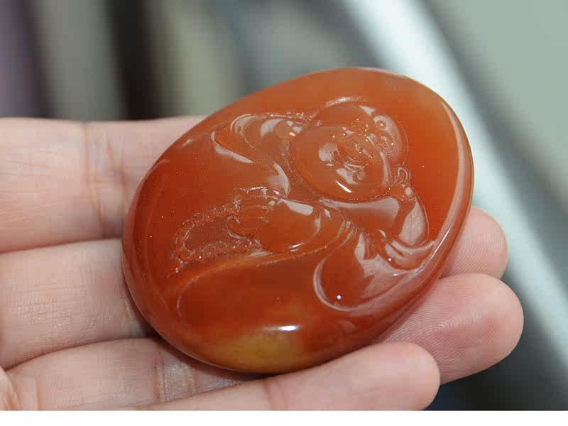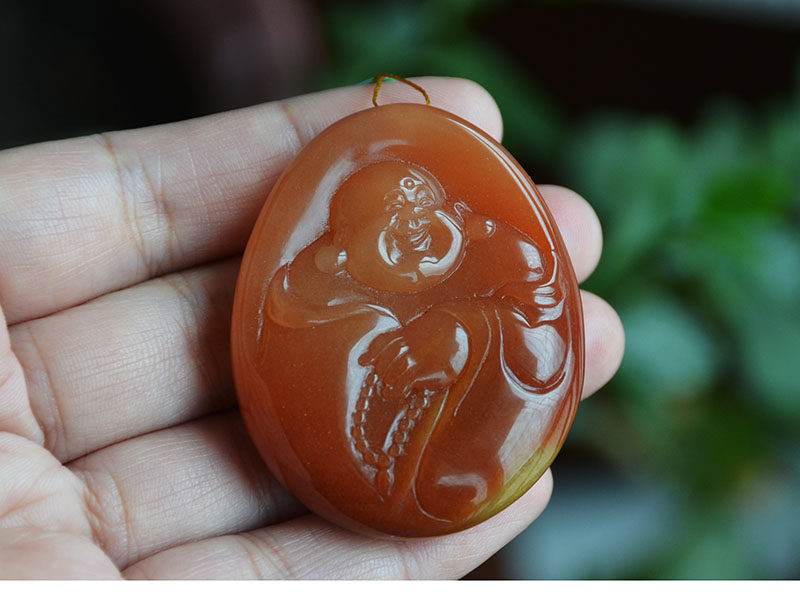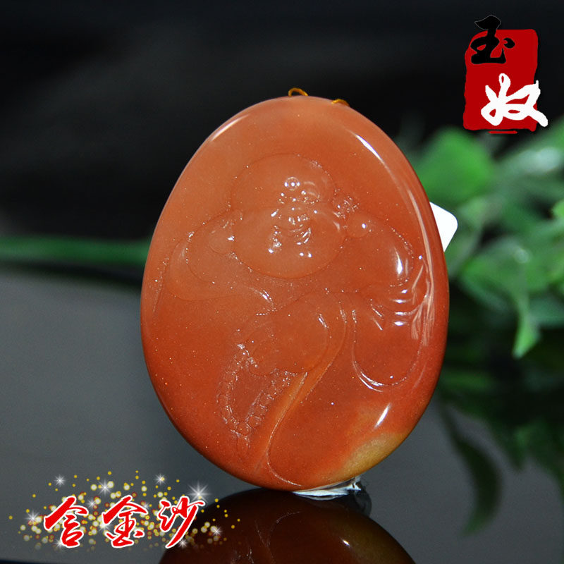 玉奴 /Xinjiang urhe Natural Gold Silk Jade/Красный Gem Light/Полный золотой песок/Смех Будда/Подвеска