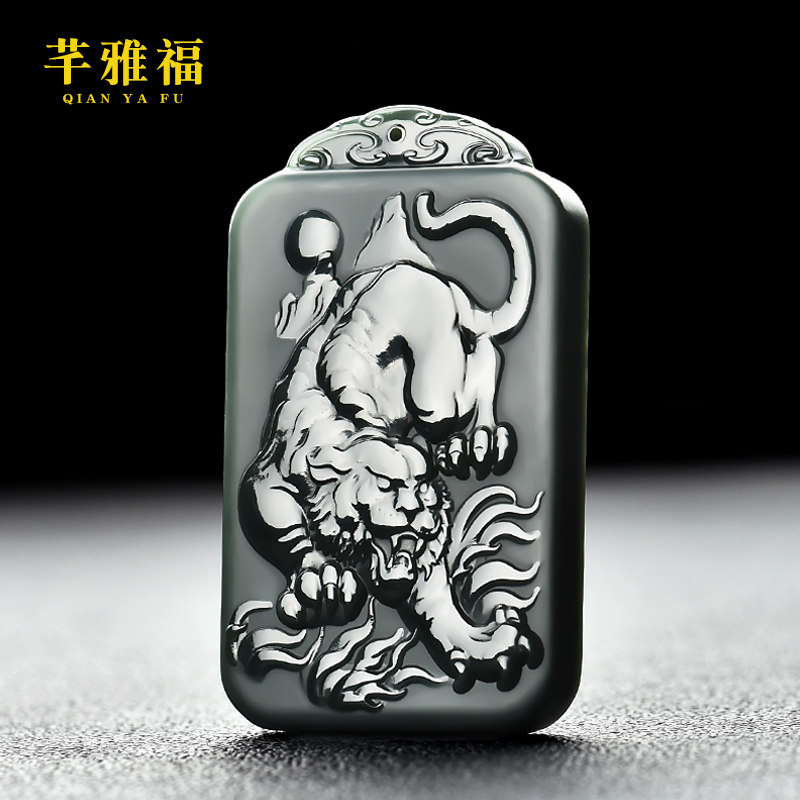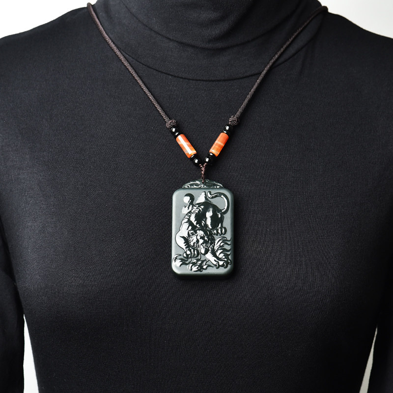 Подвеска из нефрита, двусторонное резное ожерелье, мужской стиль
