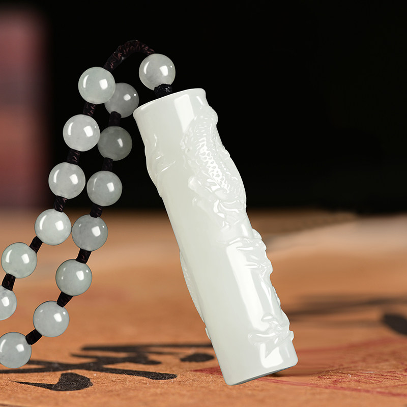 Украшение в форме дракона из белого нефрита, подвеска, природная руда, ожерелье