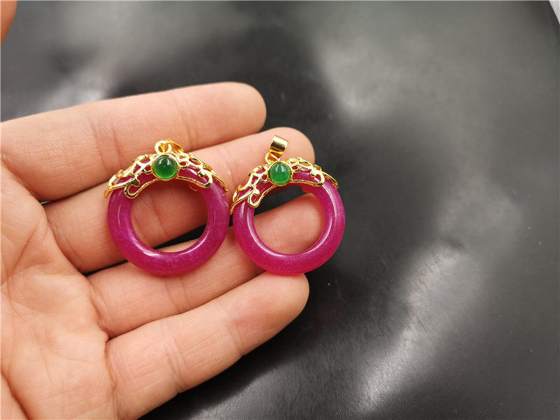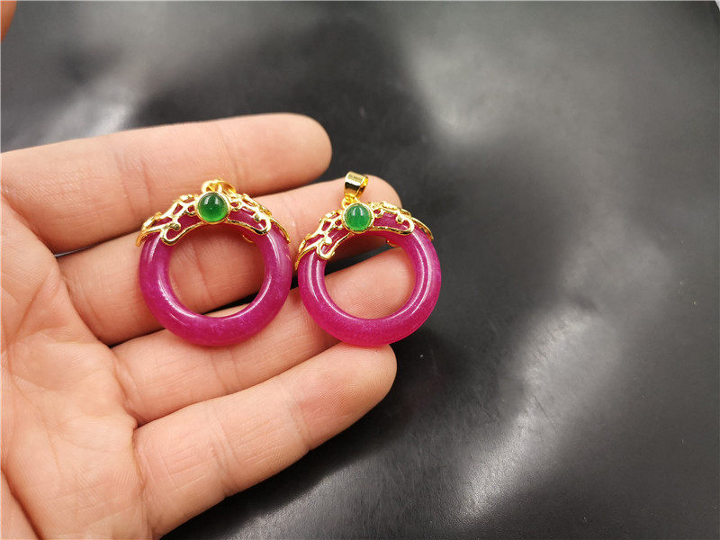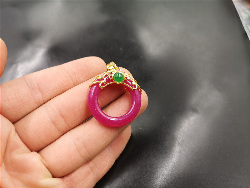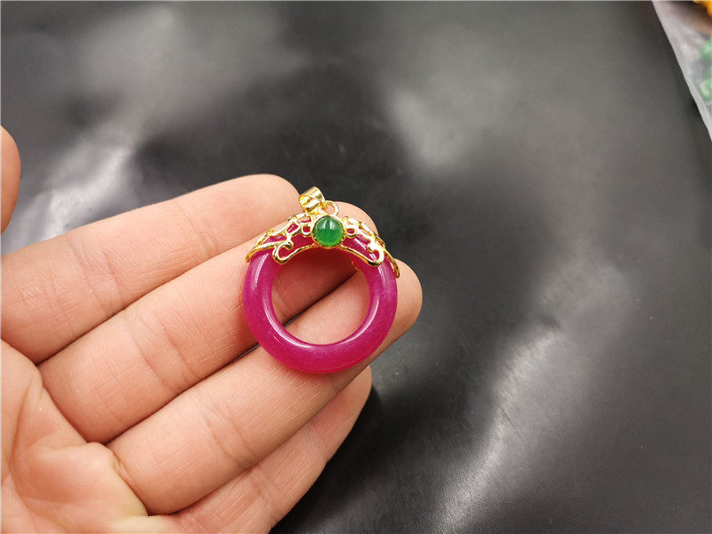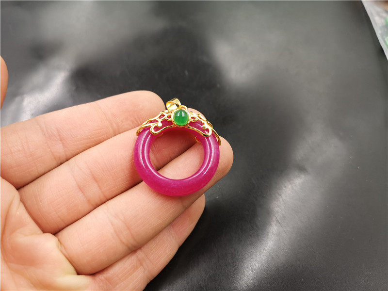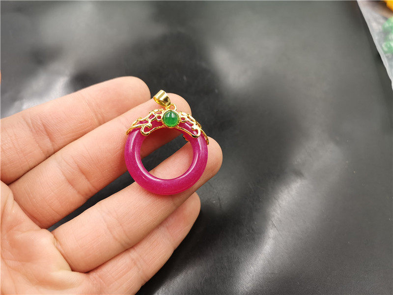 Розово-фиолетовая сиреневая инкрустация камня из нефрита, защитный амулет, подвеска, кольцо