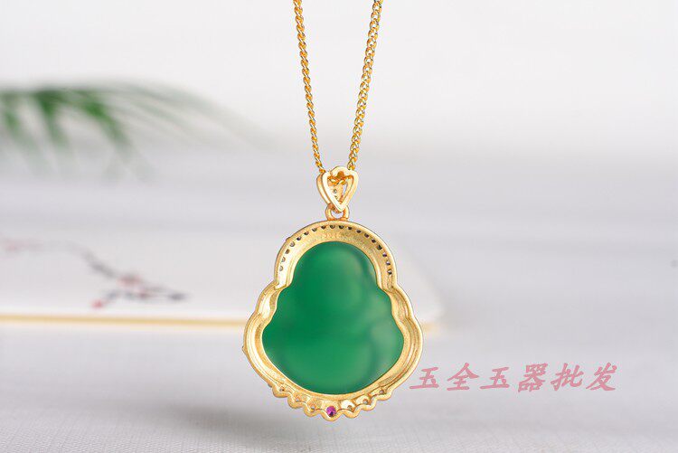 Натуральная подвеска из нефрита, инкрустация камня, ожерелье, цепочка, серебро 925 пробы, подарок на день рождения