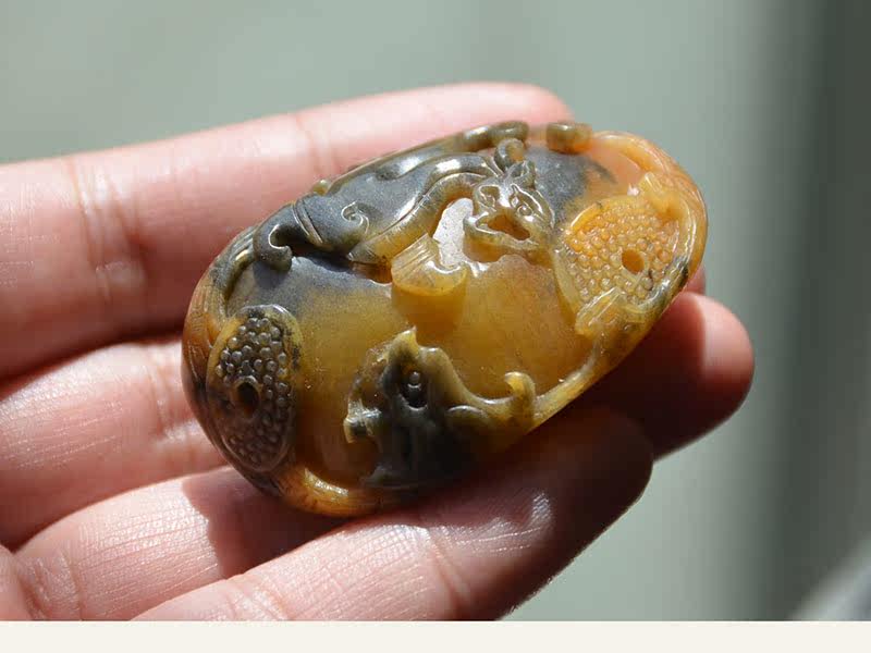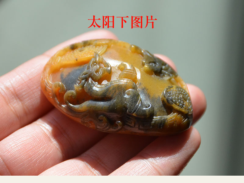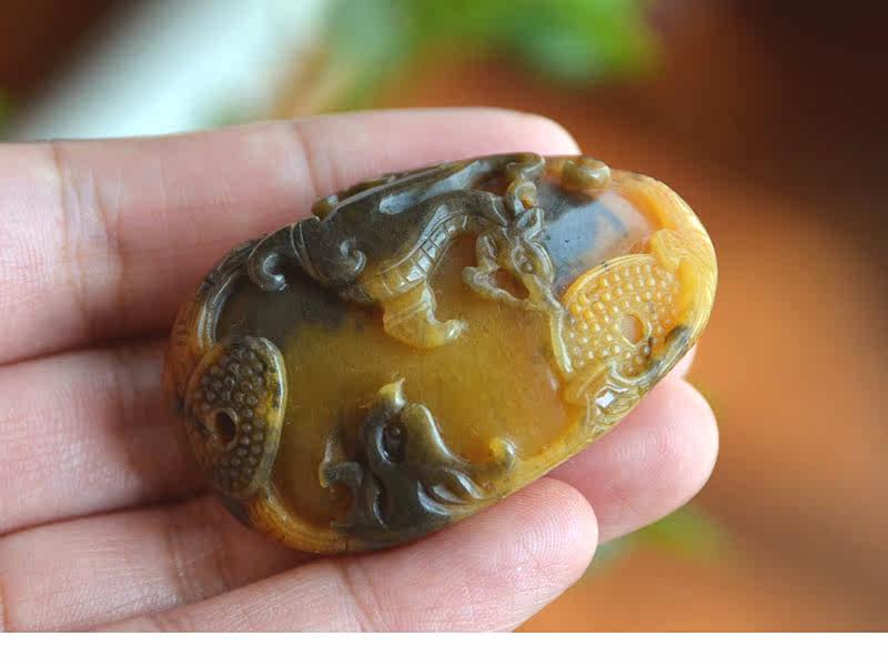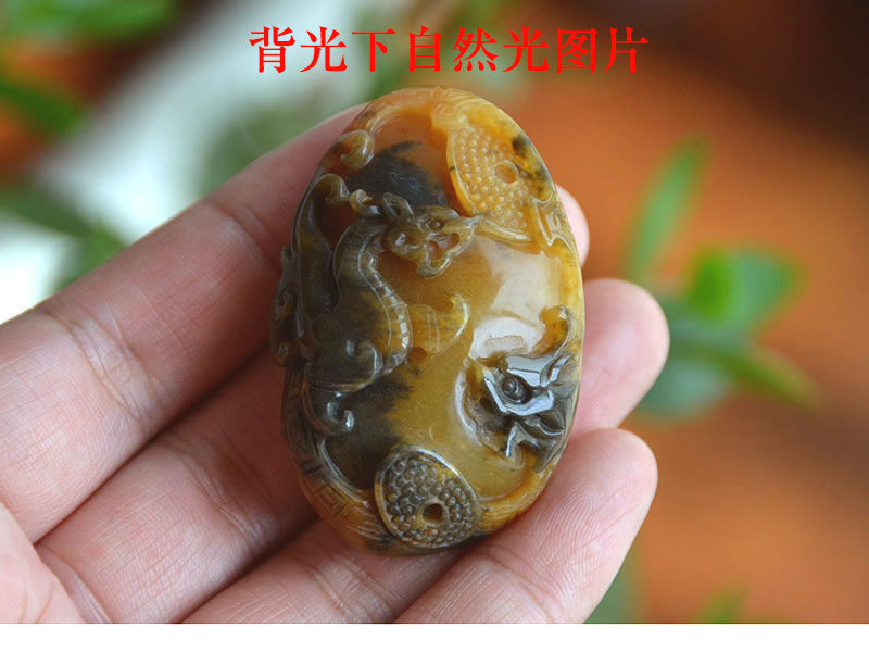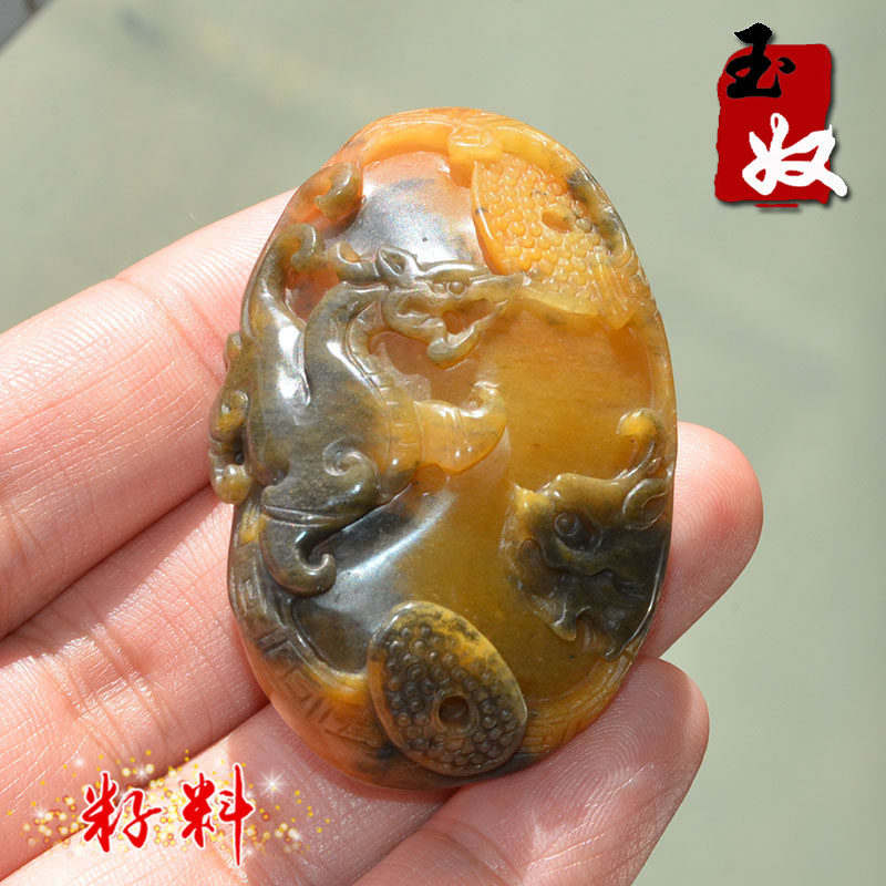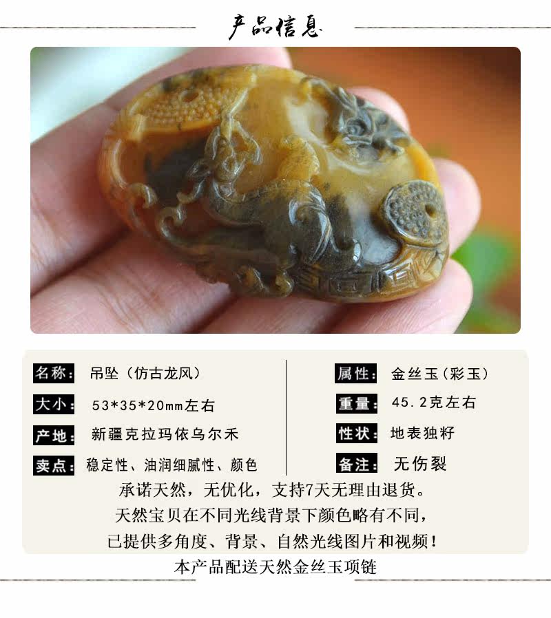玉奴 /Xinjiang Uerhe Natural Golden Silk Jade/Brilliant/Color Jade Fine Material/Antique Dragon и Phoenix/Chain/Sweater