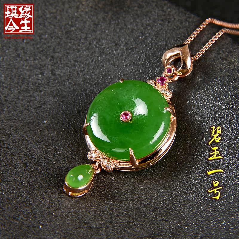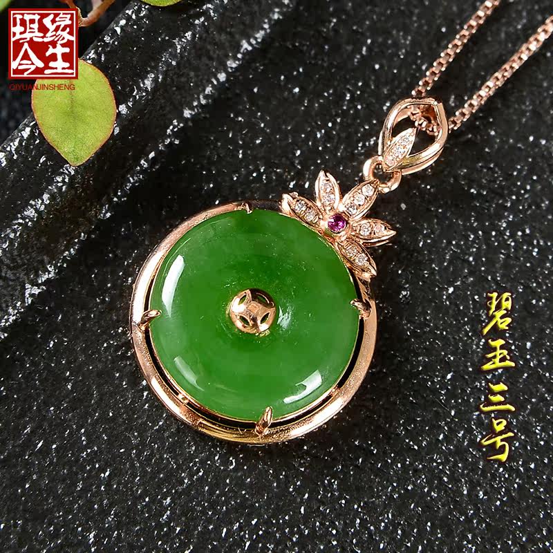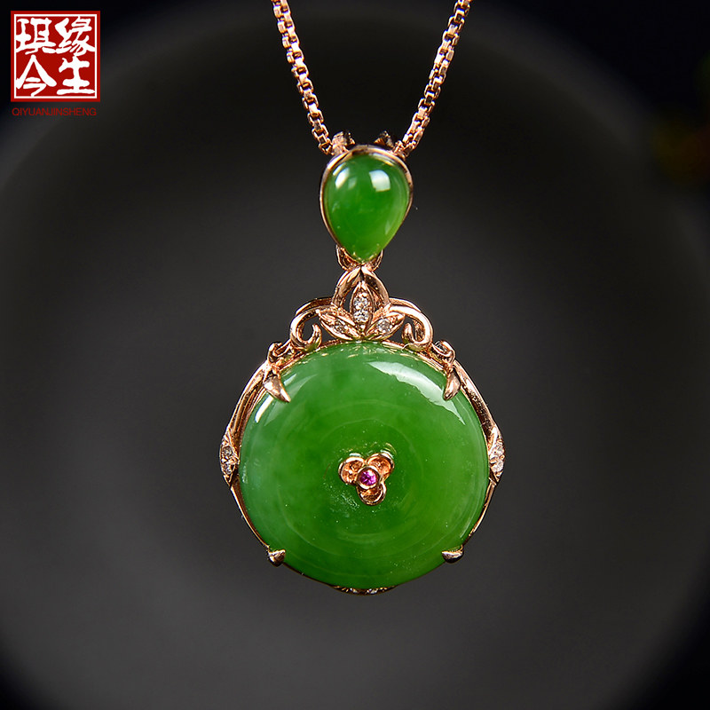 琪缘今生 Натуральная подвеска из нефрита, яшма, защитный амулет, пряжка, ожерелье, золото 18 карат, женский стиль