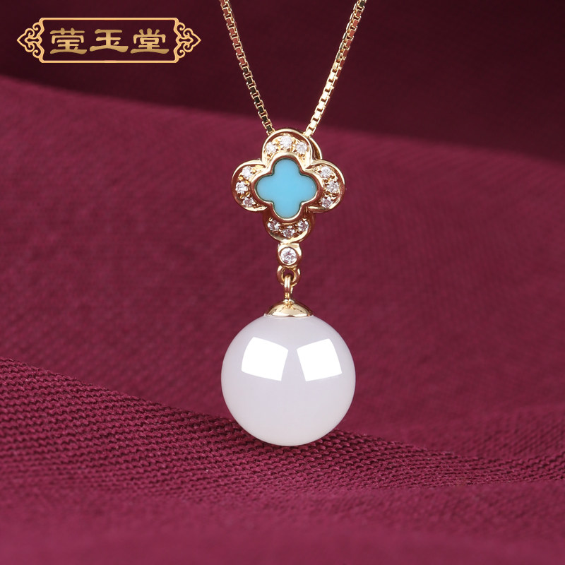 Инкрустация камня из белого нефрита, подвеска, яшма, браслет с одной бусиной, ожерелье, золото 750 пробы