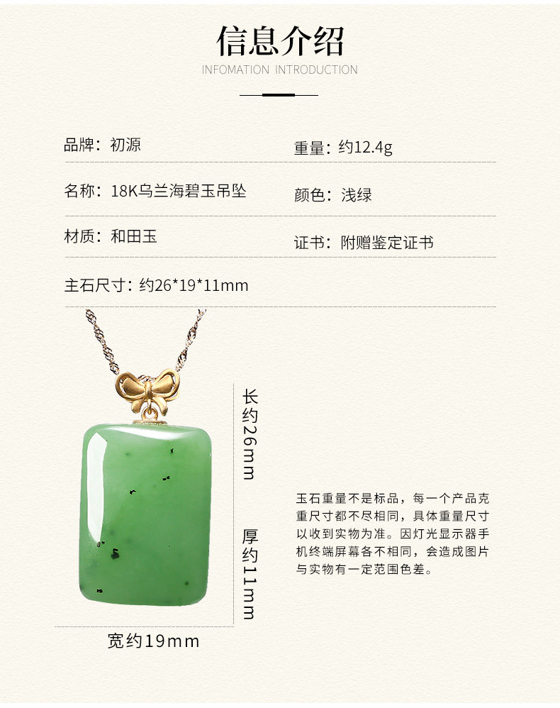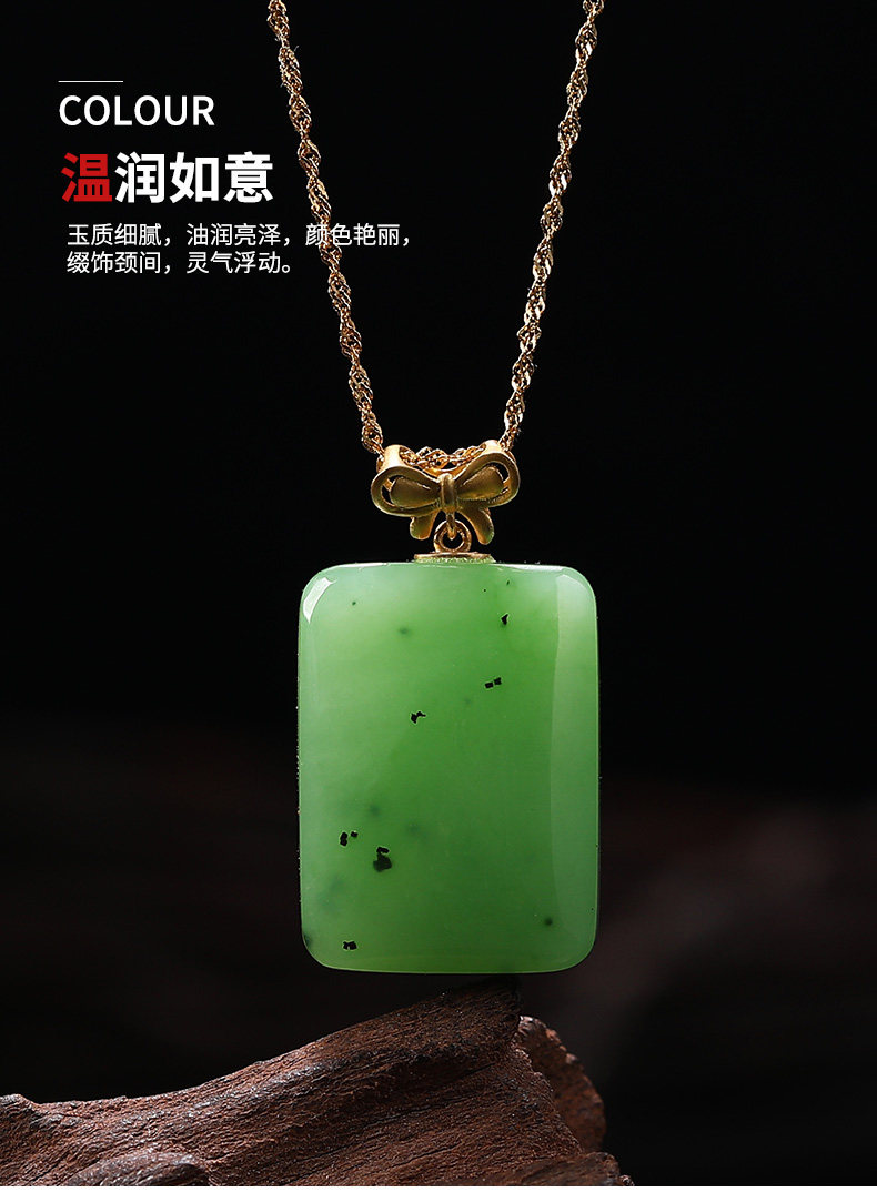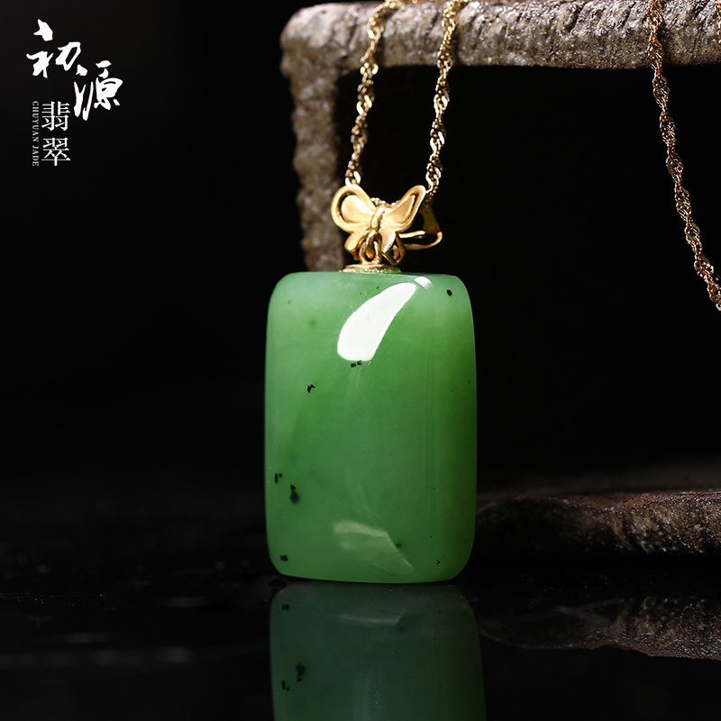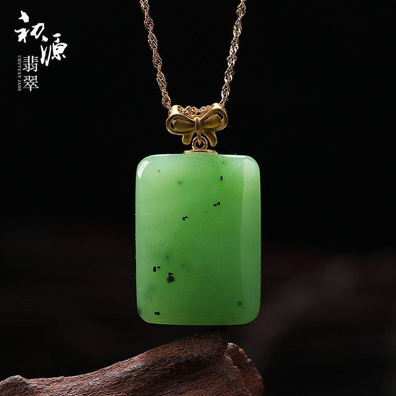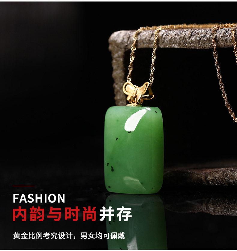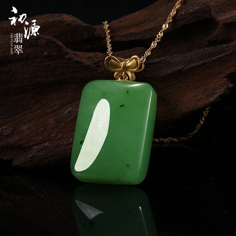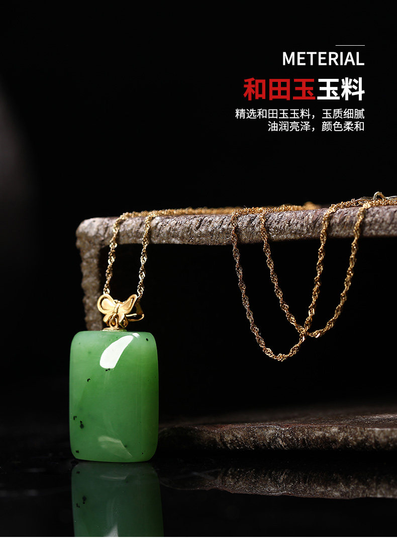 初源 Apple, яшма из округа Хотан, подвеска, ожерелье из нефрита, золото 18 карат, женский стиль