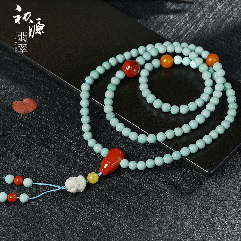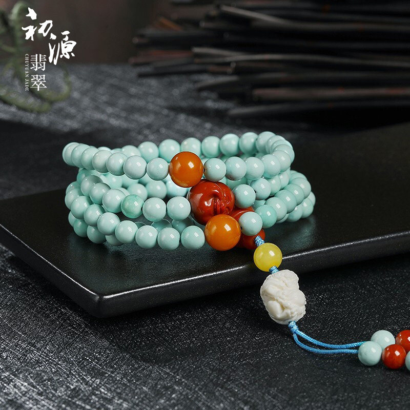 初源 Бирюзовый янтарный красный браслет, красные бусины, свитер, цепочка, тройник