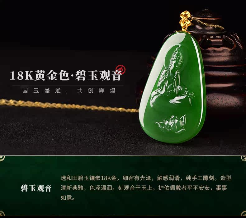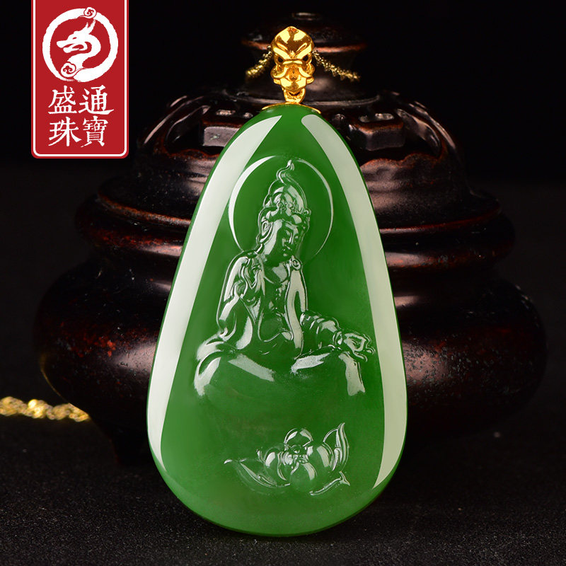 盛通珠宝 Яшма из нефрита, чай Тегуаньинь, подвеска, золото 750 пробы
