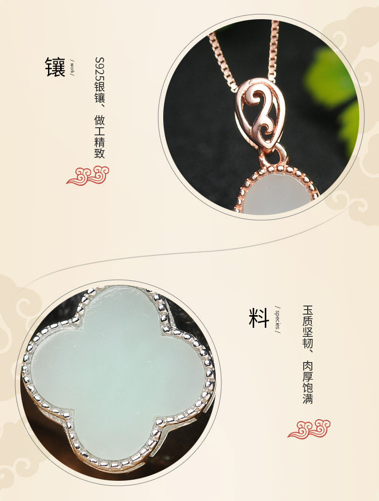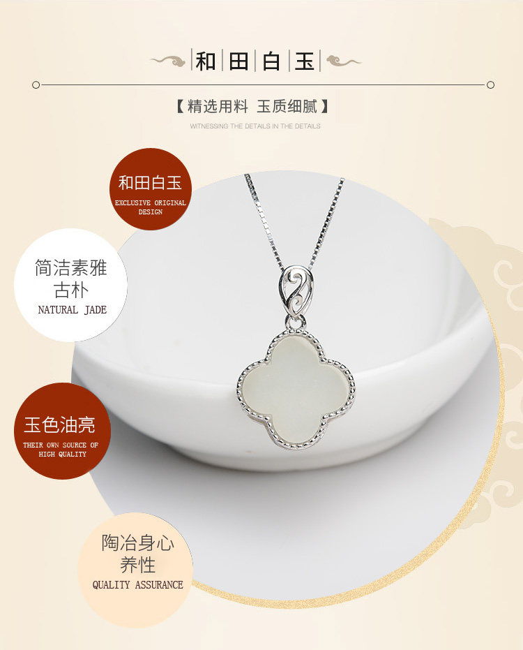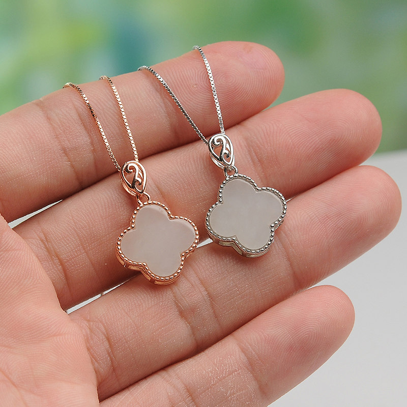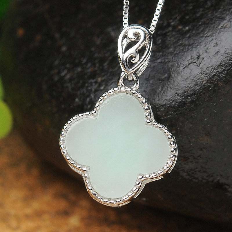 Подвеска из нефрита, модная инкрустация камня, четырехлистный клевер, серебро 925 пробы, женский стиль