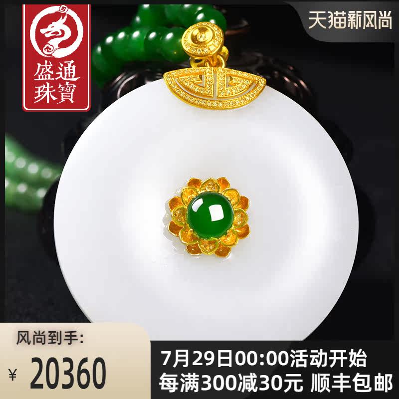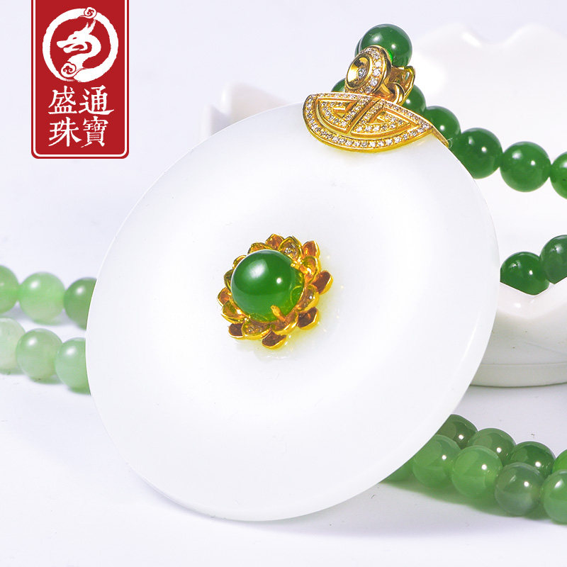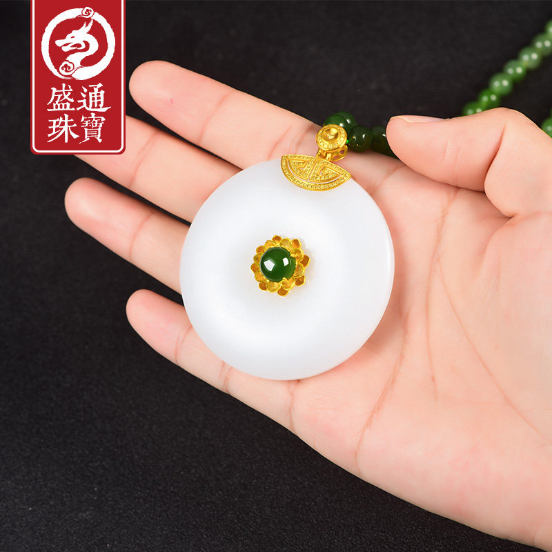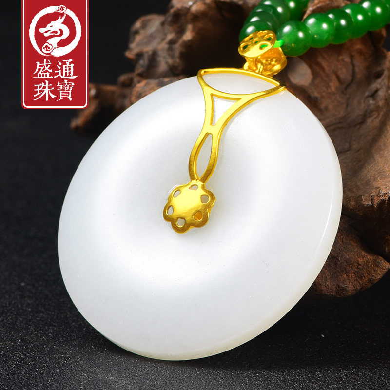 盛通珠宝 Защитный амулет из округа Хотан из белого нефрита, пряжка, подвеска подходит для мужчин и женщин, природная руда из нефрита, золото 750 пробы