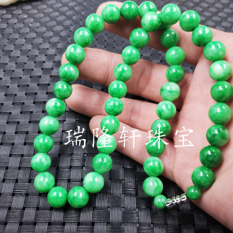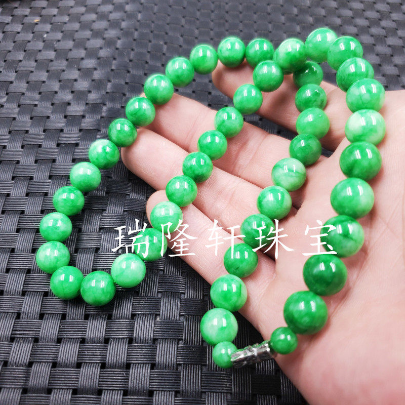 Ruilong Xuan Cuiyuyan Blue Pearl Collese 10 мм нефритового ожерелья Flip Yang Green Crase Bone Collese Jade жемчужный цепь