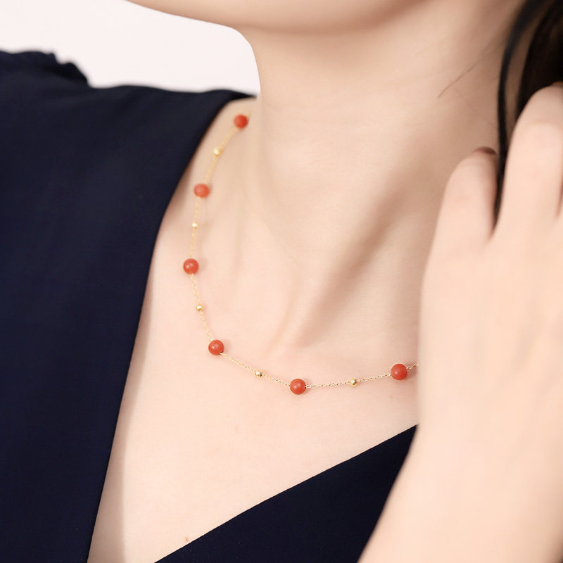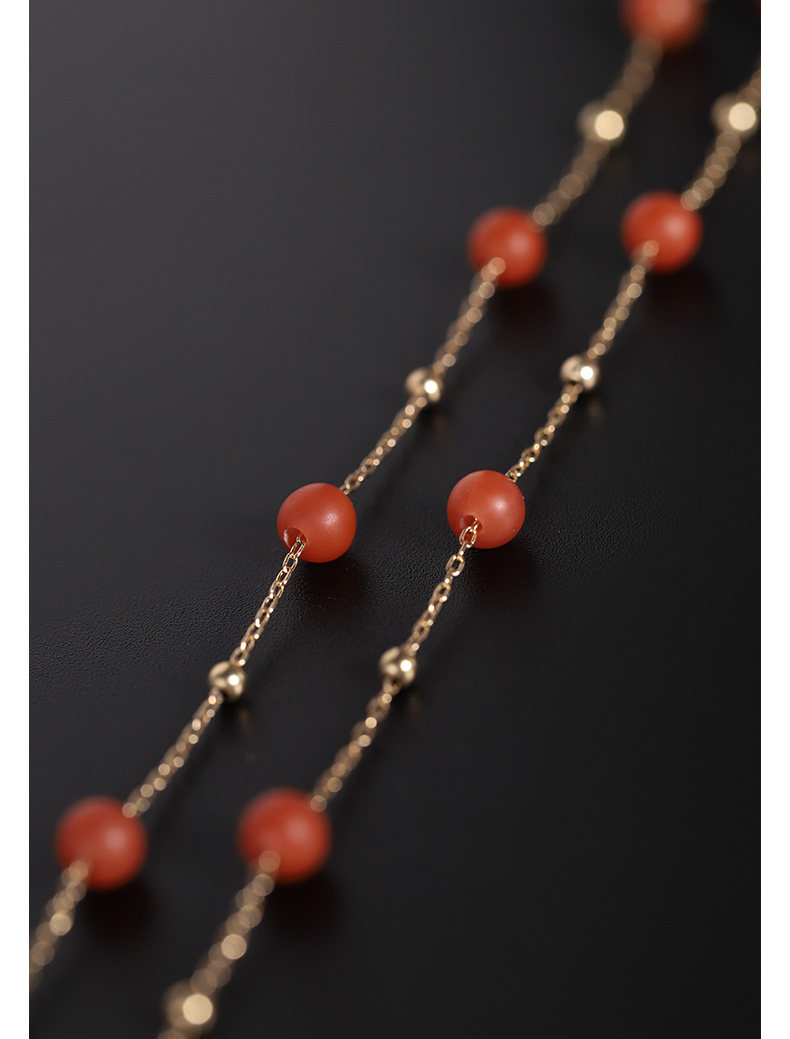 Ювелирное украшение, красное агатовое ожерелье, цепочка, 14 карат