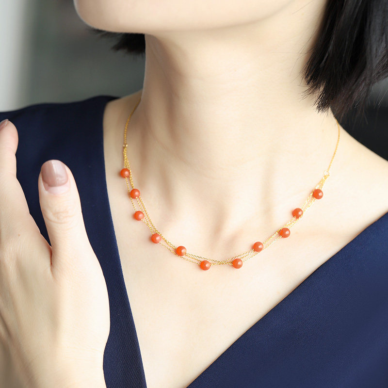 Ювелирное украшение, красное агатовое золотое ожерелье, подвеска, 18 карат, подарок на день рождения