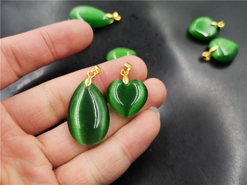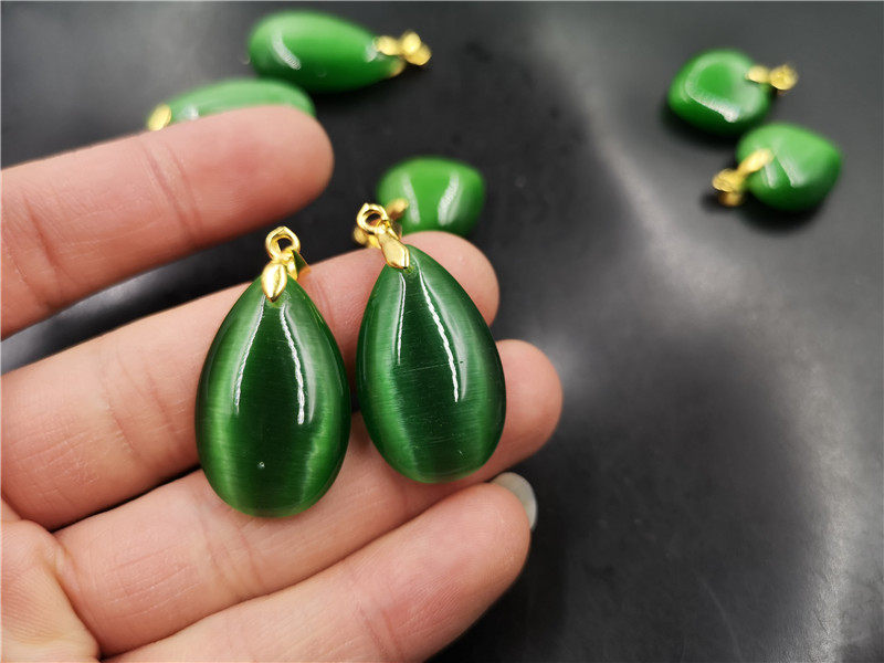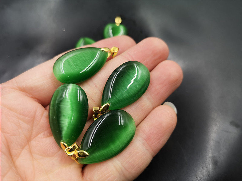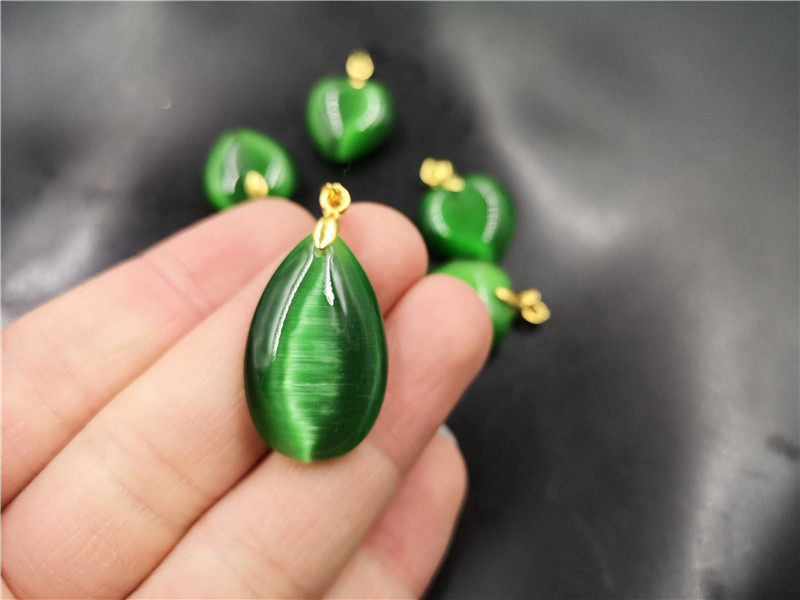 Двусторонная зеленая подвеска в форме капли, кошачий глаз