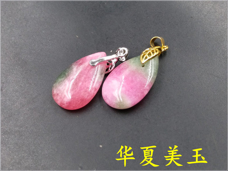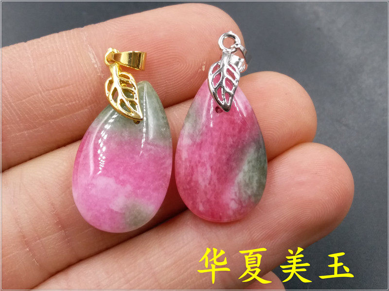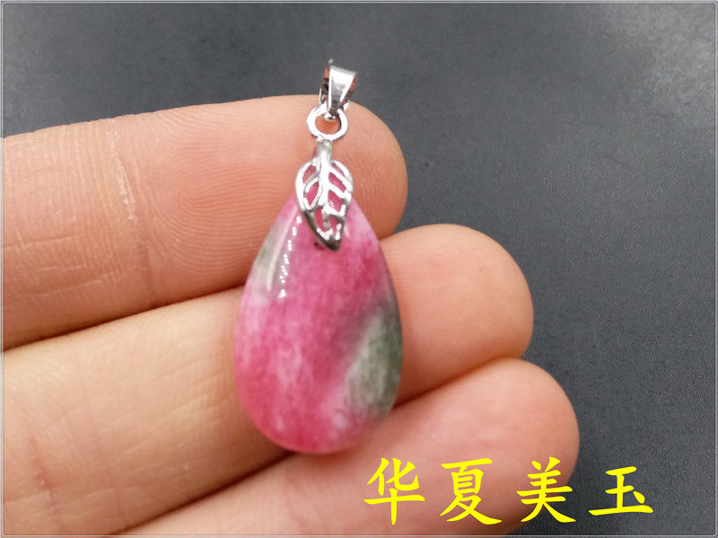 Розовая инкрустация камня, двусторонная подвеска из нефрита в форме капли, серебро 925 пробы