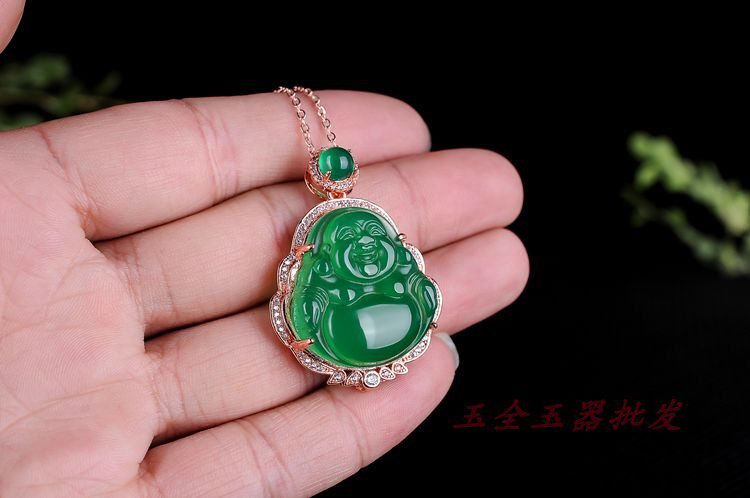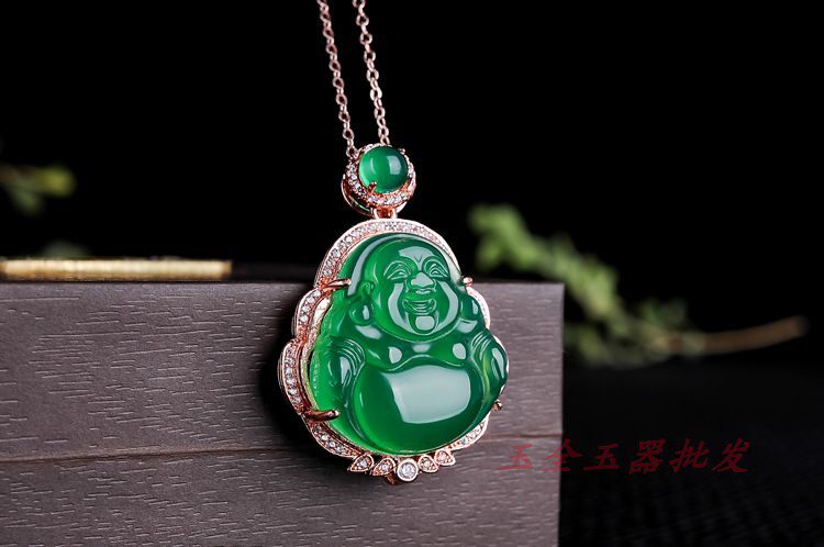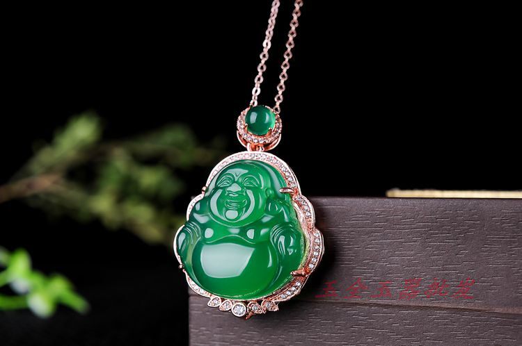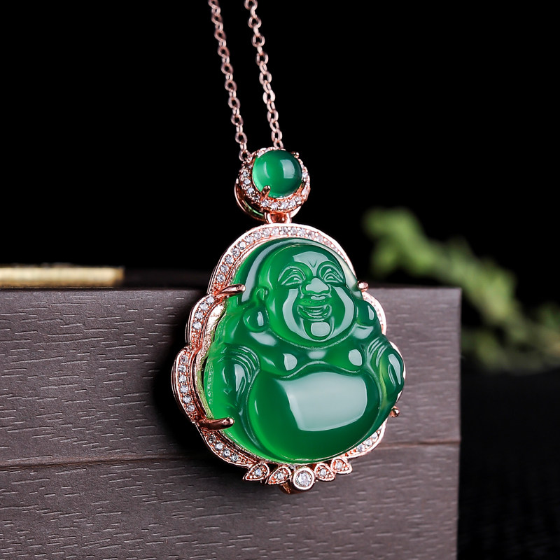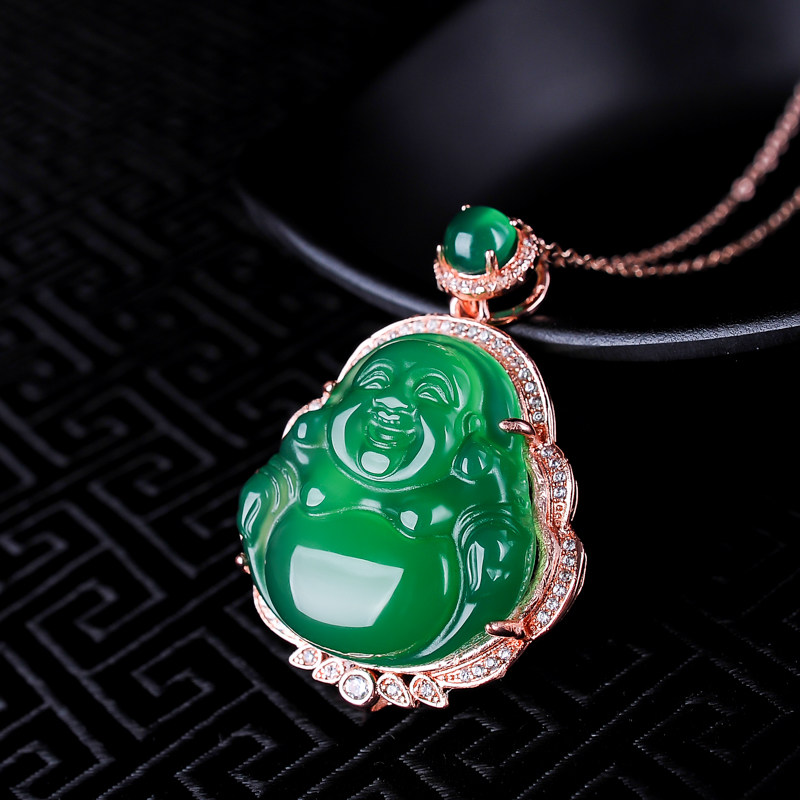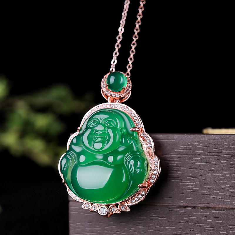 Подвеска из нефрита, агатовая инкрустация камня, цепочка, женский стиль