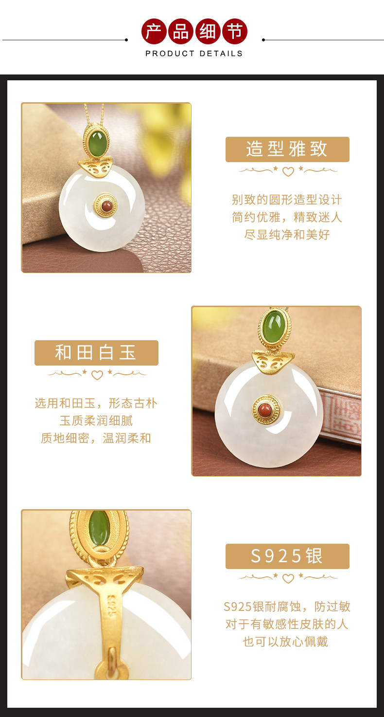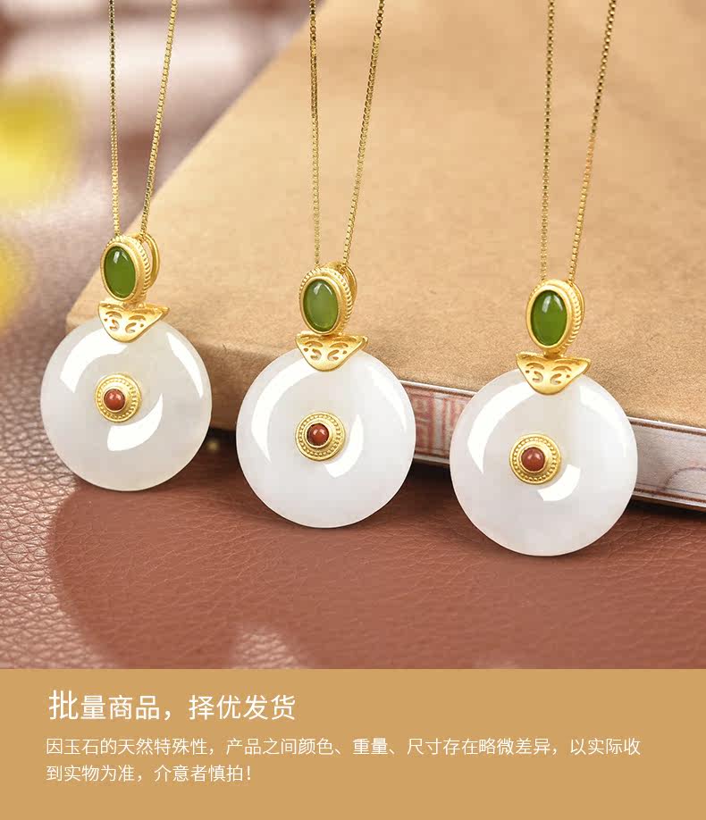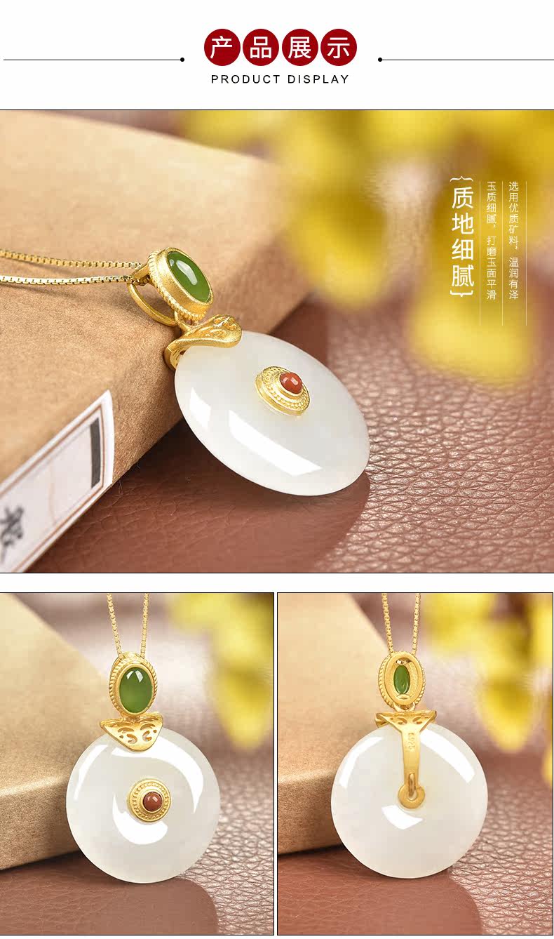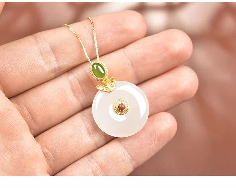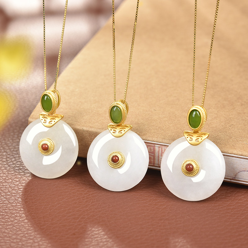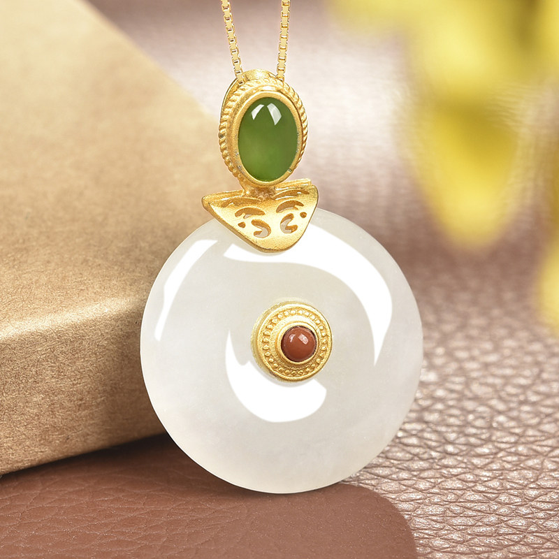亿珍阁 Натуральная инкрустация камня, защитный амулет из нефрита, пряжка, подвеска, брендовая цепочка до ключиц, серебро 925 пробы, яркий броский стиль, подарок на день рождения