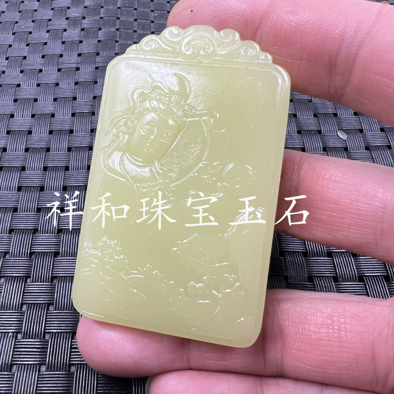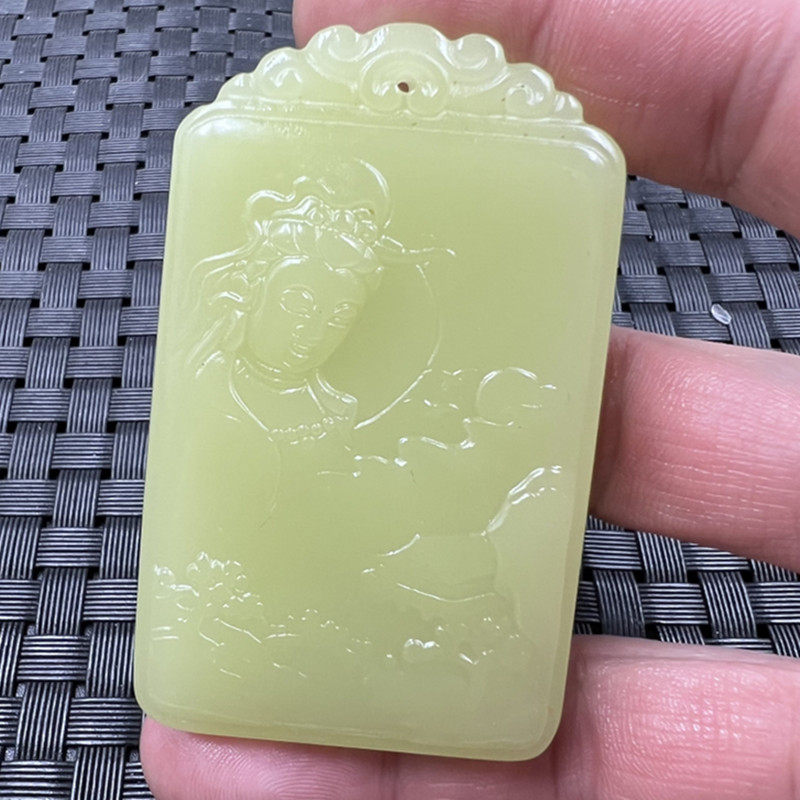 Синьцзян Хетиан Внешний монгольский кулон Гуаньян, образующий подвеску Джейд Гуаньин