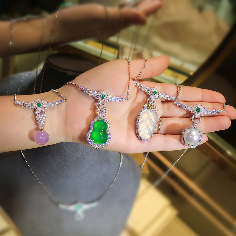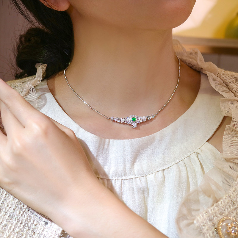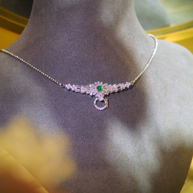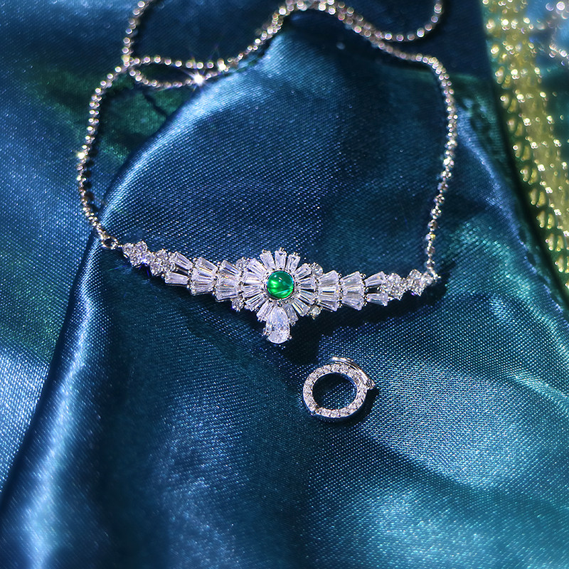 Дизайнерская универсальная инкрустация камня, ожерелье из нефрита, изумрудная природная руда, солнечно-зеленая подвеска, цепочка до ключиц, DIY