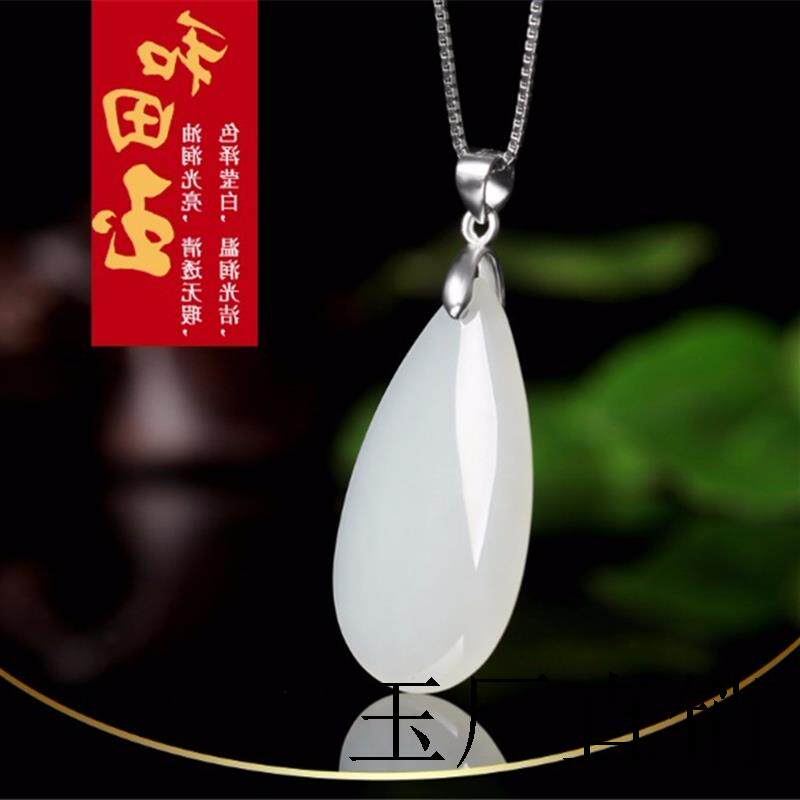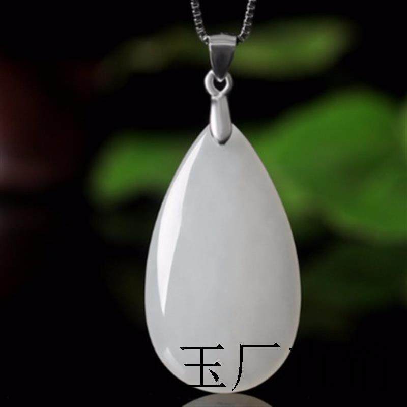 Подвеска в форме капли из белого нефрита, яшма, ожерелье, серебро 925 пробы