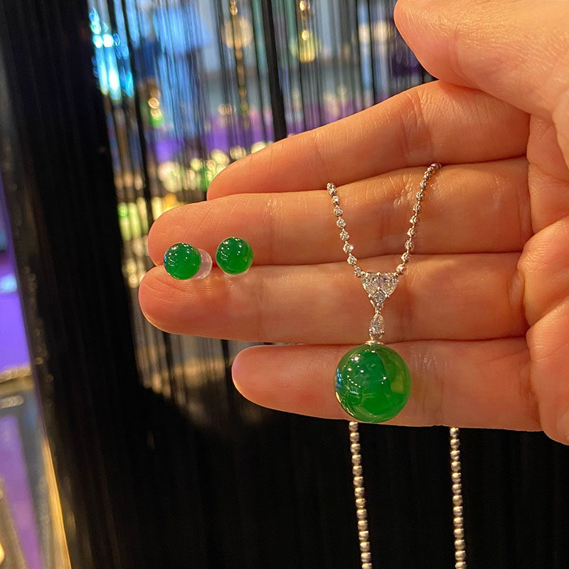 Изумрудный солнечно-зеленый комплект, стеклянное украшение-шарик, подвеска, универсальные серьги