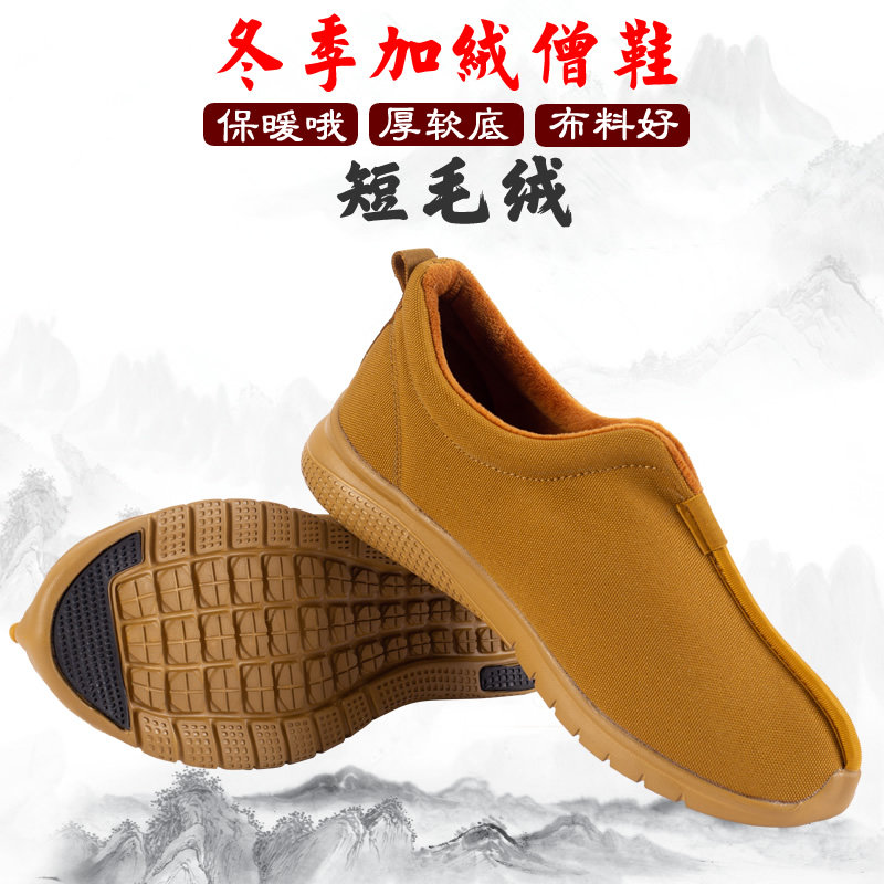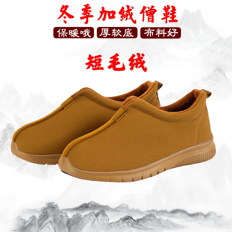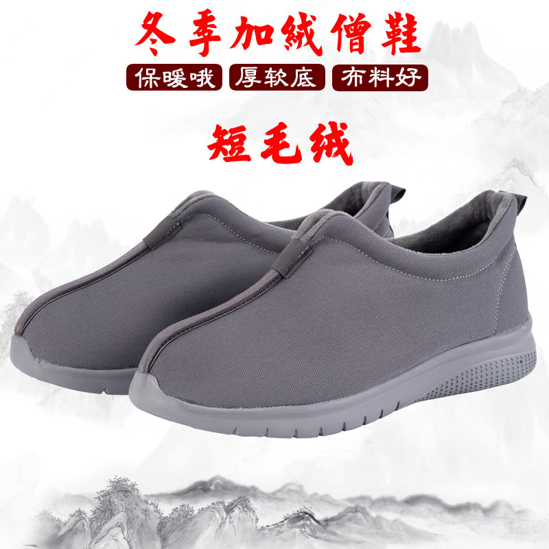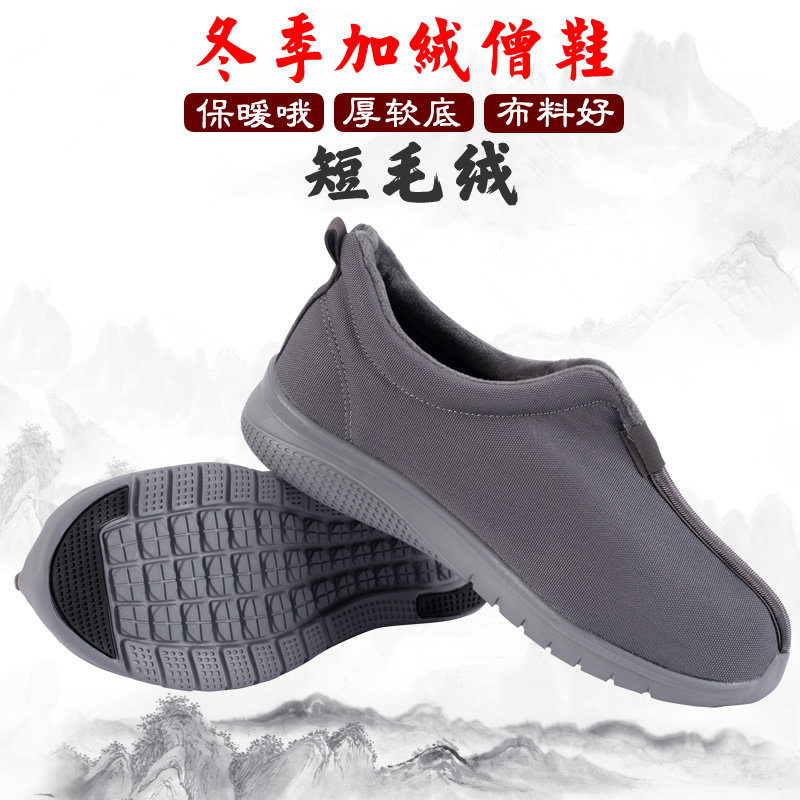 Monk две хлопчатобумажные туфли зимой плюс бархатный нагревающий монастые монахи и мужчины и женщины, то же мягкое дно, водонепроницаемое, водонепроницаемое и низко -стоп