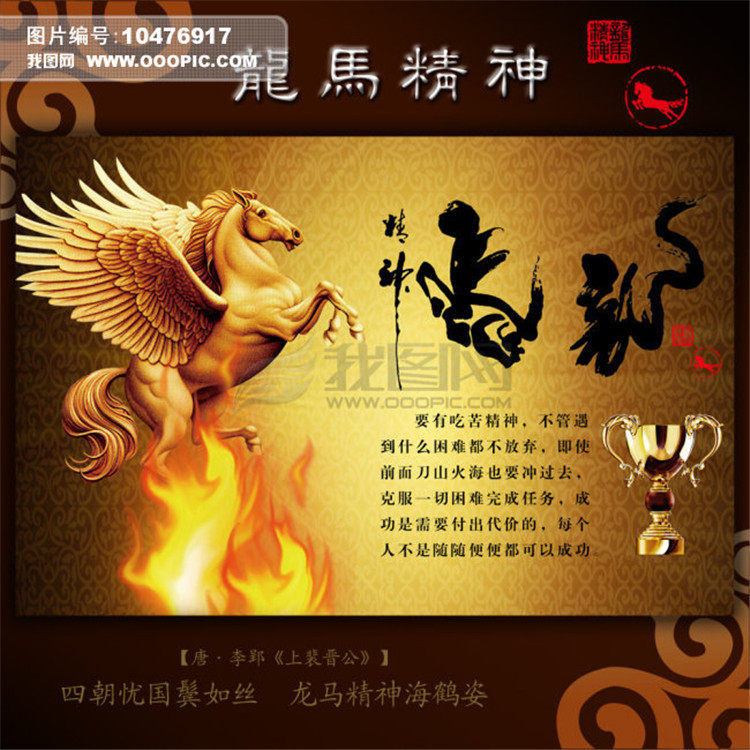 Дух лошади Дракона-это национальный дух непрерывной борьбы, самосовершенствования и восхищения, поддерживаемой китайской нацией с древних времен.Предки полагали, что лошадь дракона была доброжелательной лошадью, это были эльфы желтой реки, воплощение потомков Яна и Хуанга, и представляли субъективный дух и благородную мораль китайской нации.