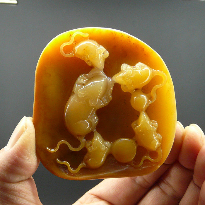 Yunnan Longling натуральный нефритовый материал класса А Huanglong из необработанной кожи с изображением пяти сыновей Дэнке и крысы, у вас есть богатство.Маленький орнамент