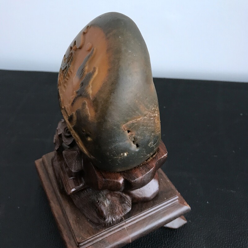 Семенной материал из вороньей кожи окружен натуральной необработанной кожей. Боковая часть окна вырезана черным цветом, а в качестве основы использован желтый нефрит. Это уникальный продукт.