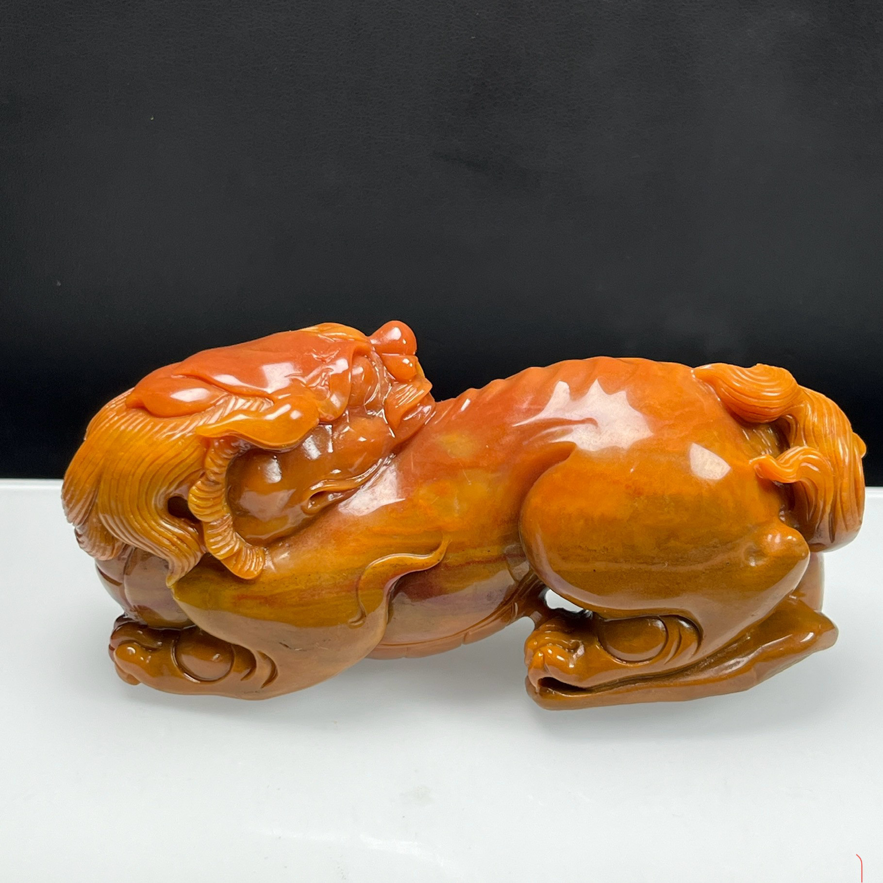 Жуйхуан Цуй Чистый натуральный нефрит Юньнань Хуанлун Нефрит Ювелирные изделия Красные и желтые семена Материал Кирин Орнамент Сертификат древнего зверя