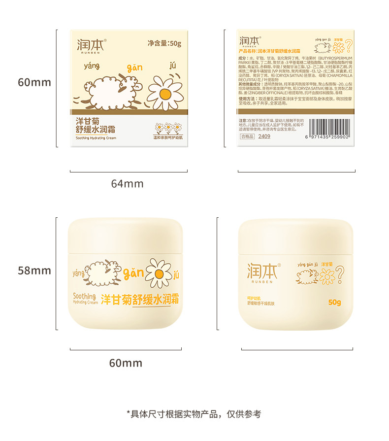 润本 Увлажняющая детская ромашка для младенца, детский крем для новорожденных, успокаивающее питательное молочко для тела
