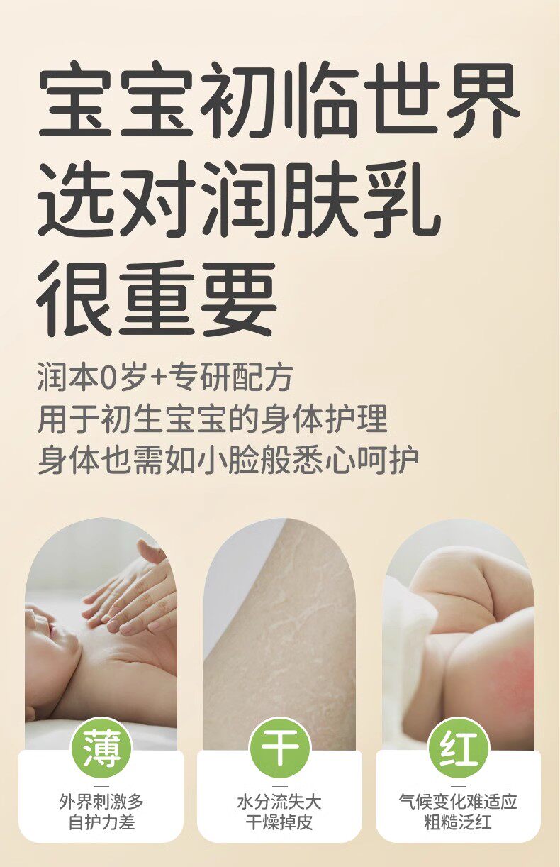 润本 Детское молочко для тела, детский крем для тела для всего тела, увлажняющий лосьон для ухода за кожей