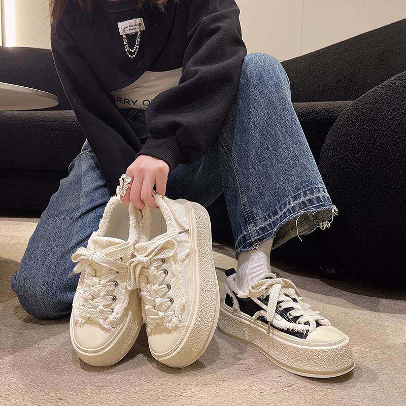 Высокая модная тканевая универсальная белая обувь на платформе, кроссовки, спортивная обувь