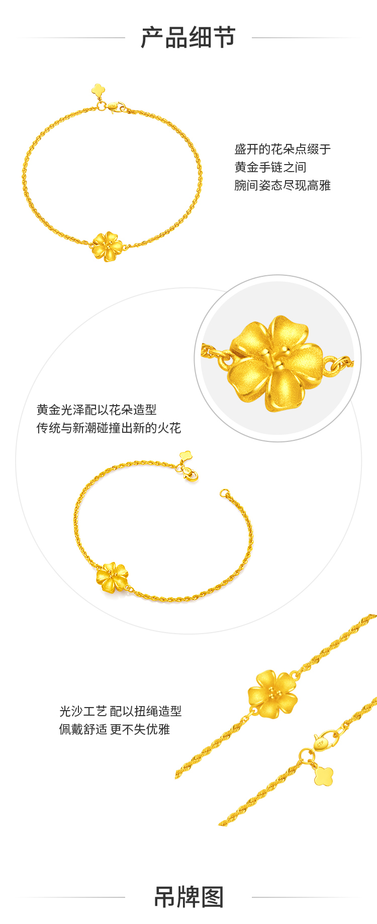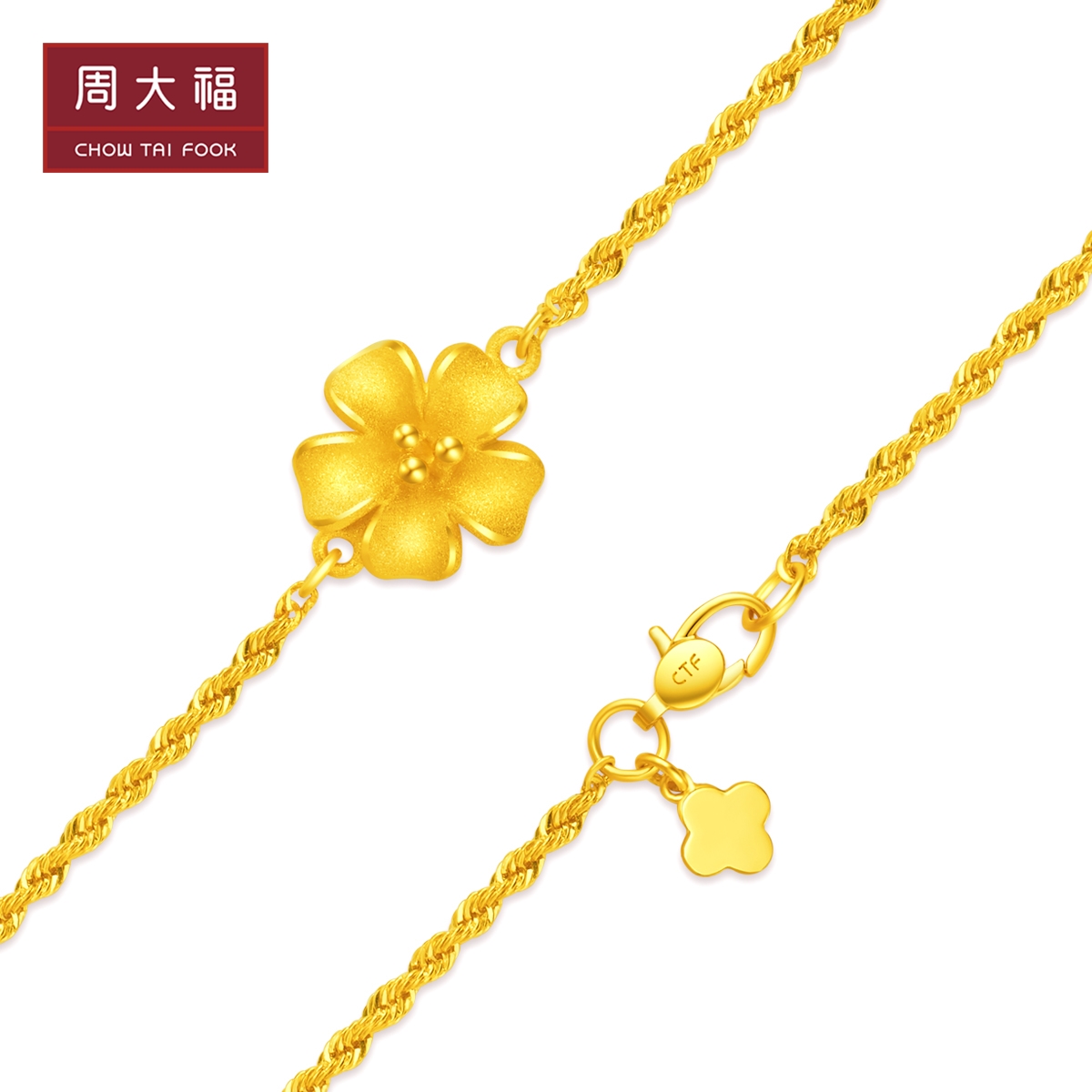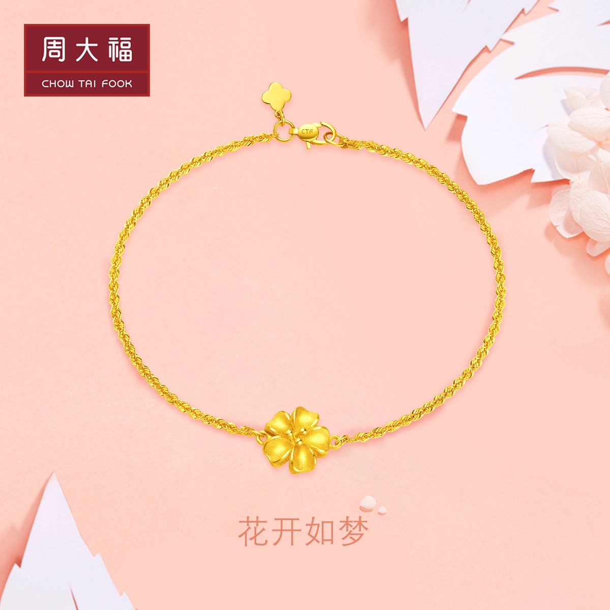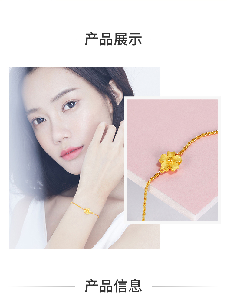 周大福 Золотой браслет, в цветочек
