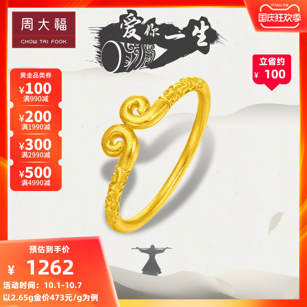 周大福 Проклятие проклятие золотого золота кольцо пары Counter Price EOF87