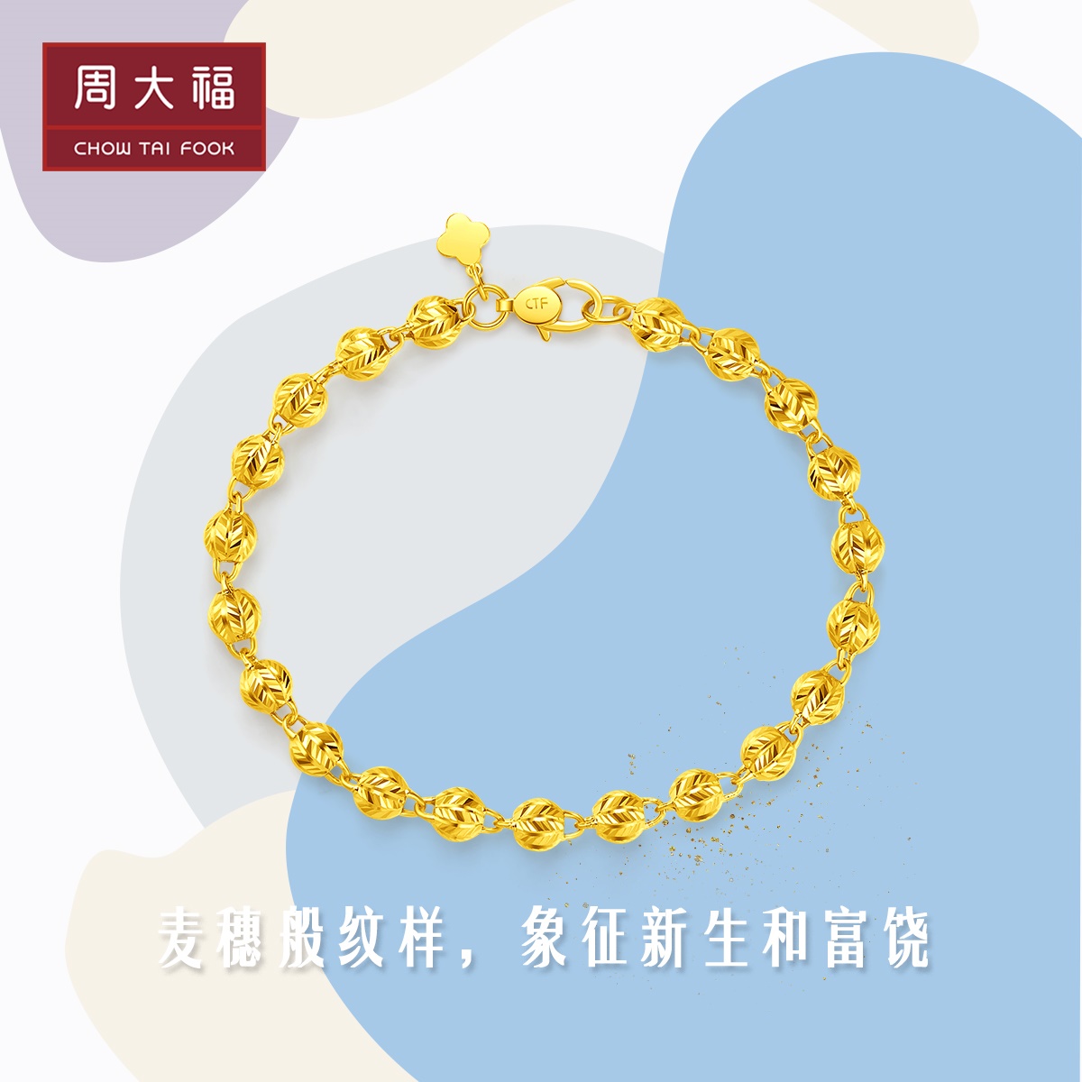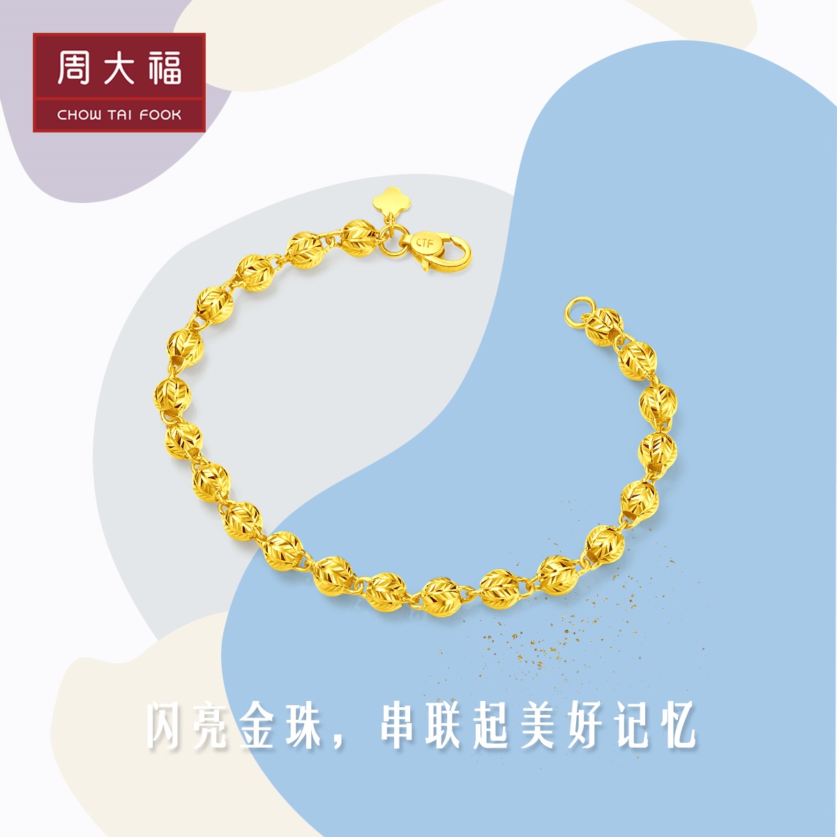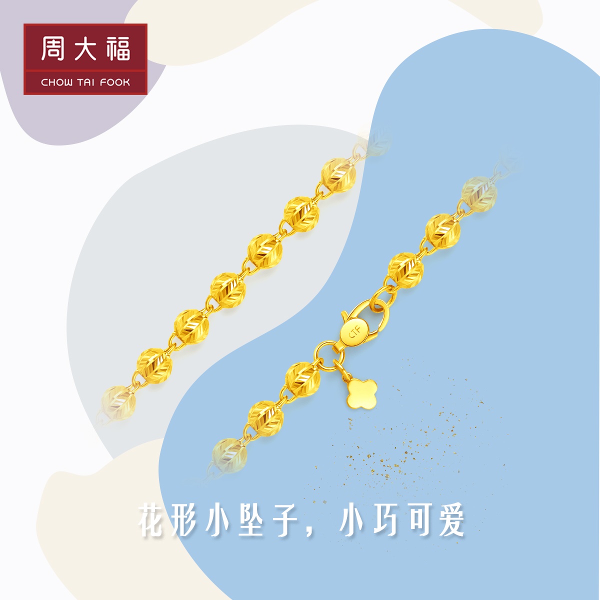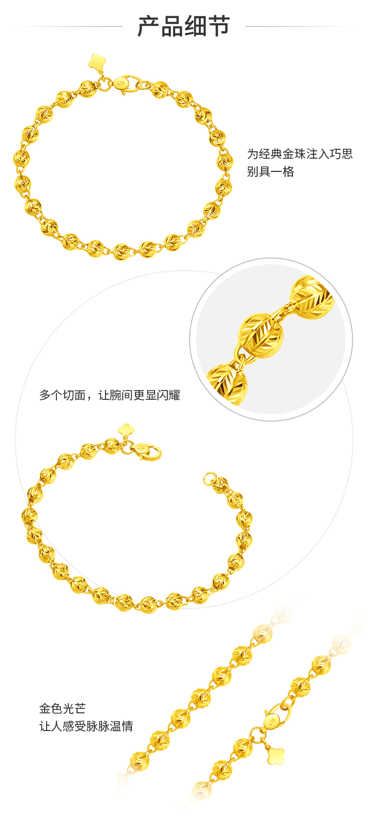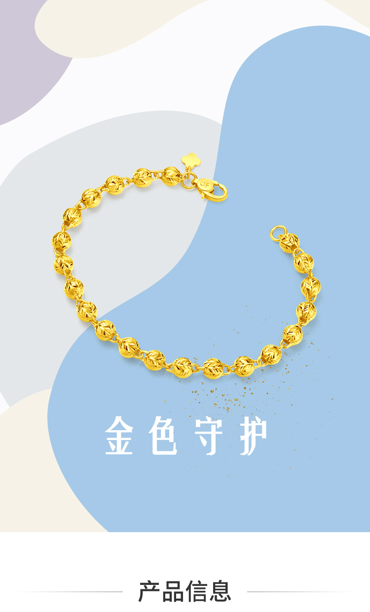 周大福 Дизайнерское украшение-шарик, золотой браслет, простой и элегантный дизайн