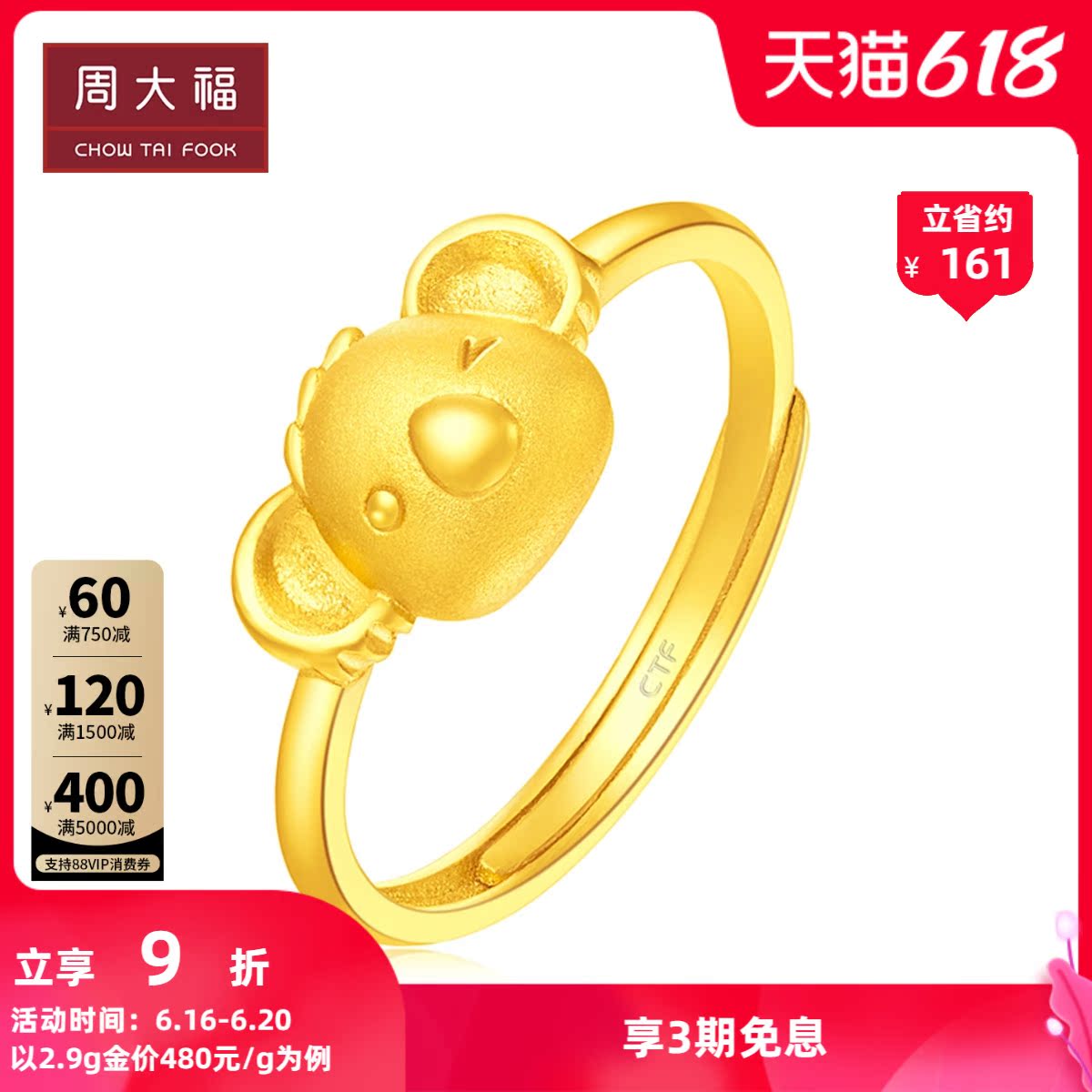 周大福 Милое ювелирное украшение, золотое кольцо