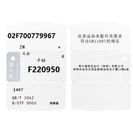 周大福 Ювелирные украшения простое звезда золота Золотой оценка браслета F220950 Выбор бутика