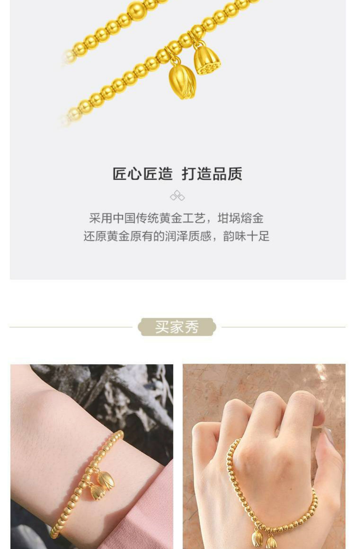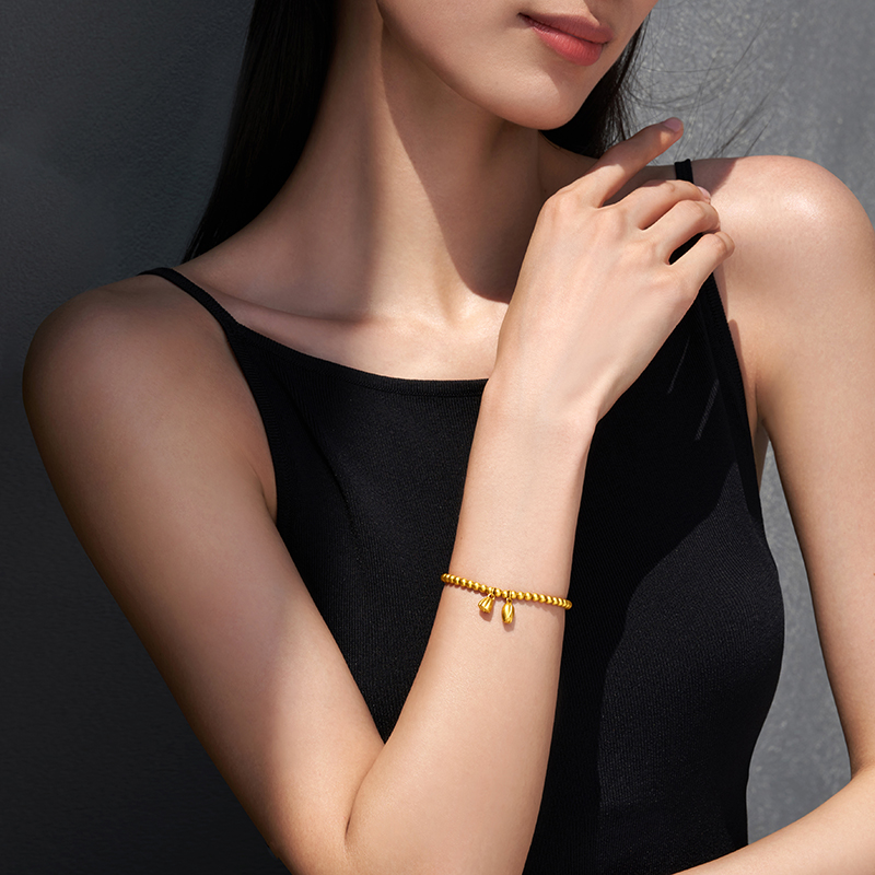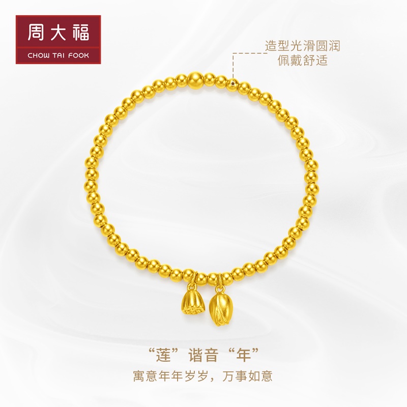 周大福 Наследование и интеграция маленьких золотых бусин ликансина, браслетов из золотого золота, цены F221393