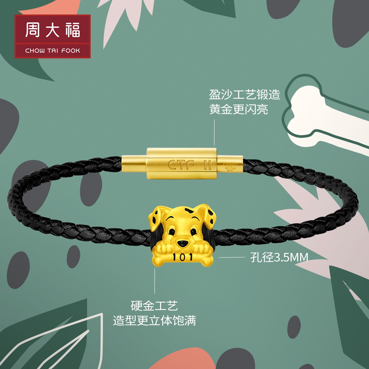 周大福 Дисней, золотая эмаль для принцессы, браслет с одной бусиной, модель R29420