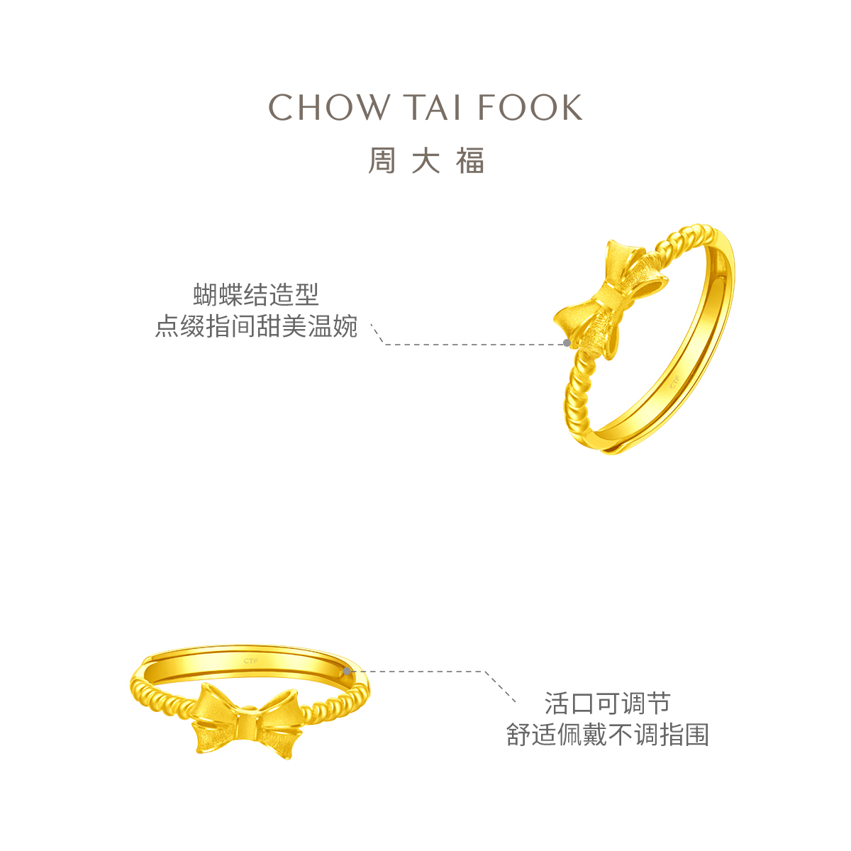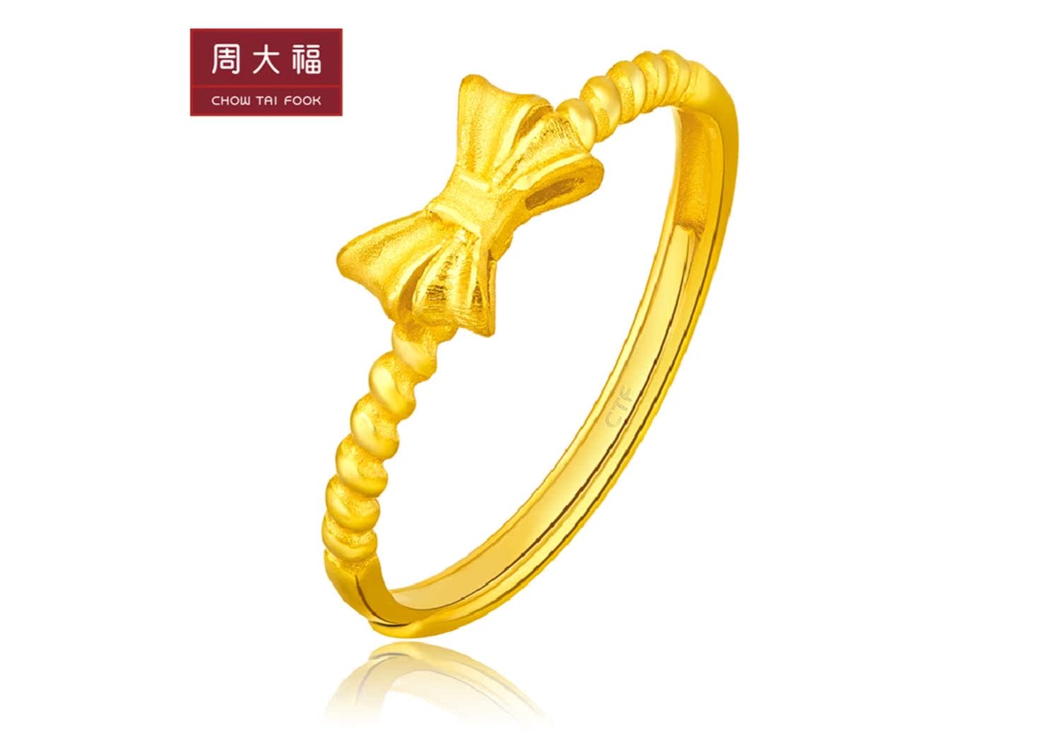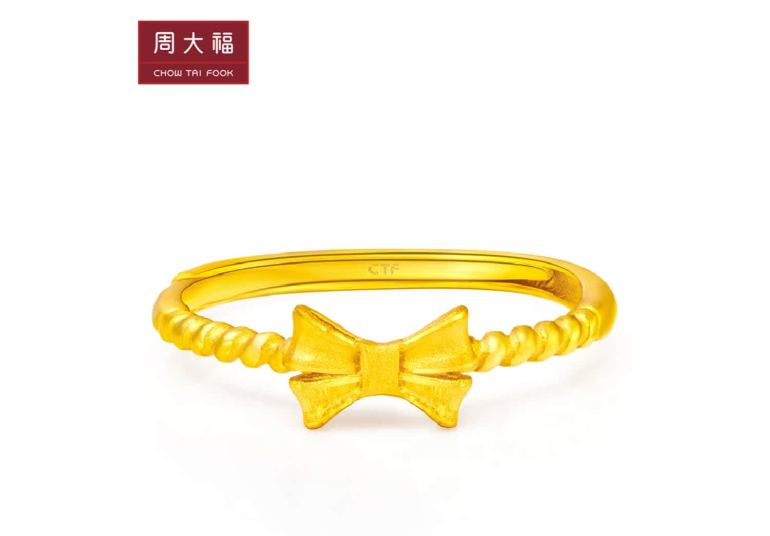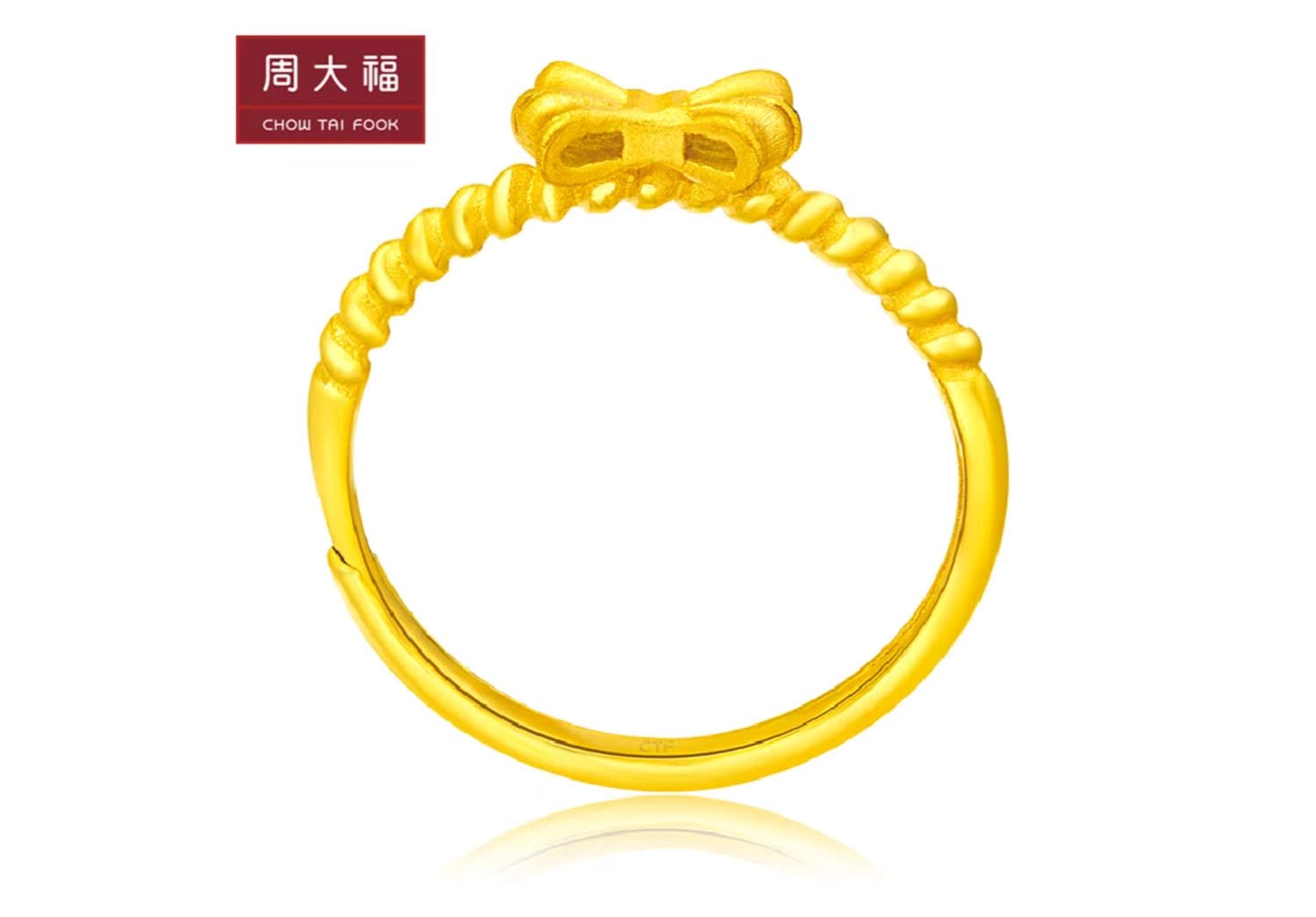 周大福 Золотое безразмерное кольцо с бантиком с косичкой