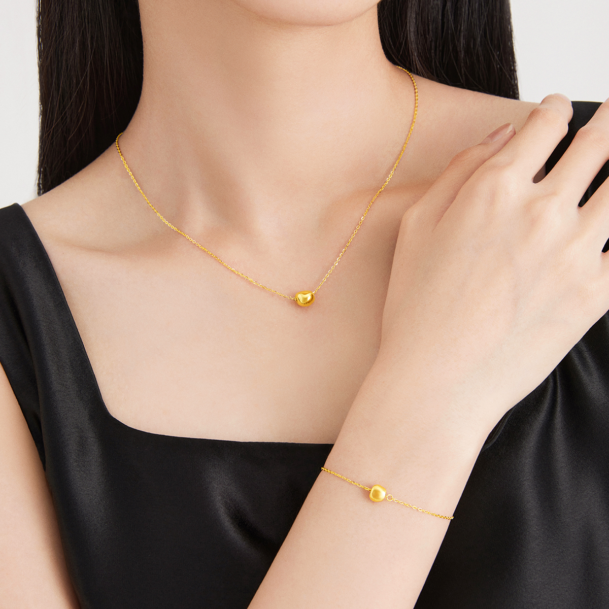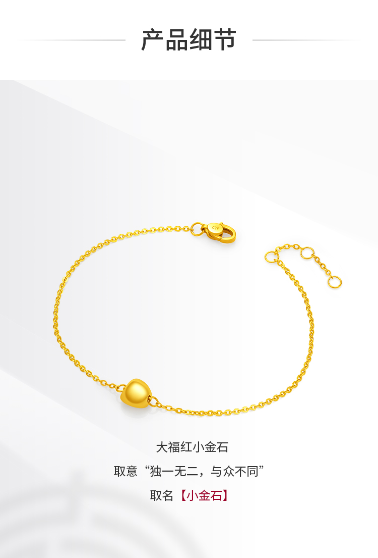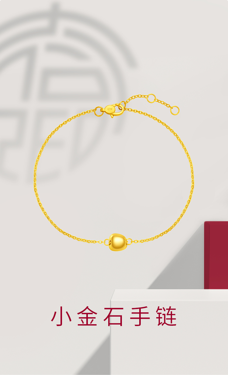 周大福 Универсальный золотой браслет, простой и элегантный дизайн