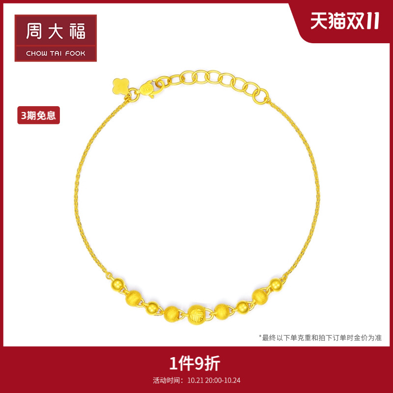 周大福 Украшение-шарик, золотой браслет, простой и элегантный дизайн